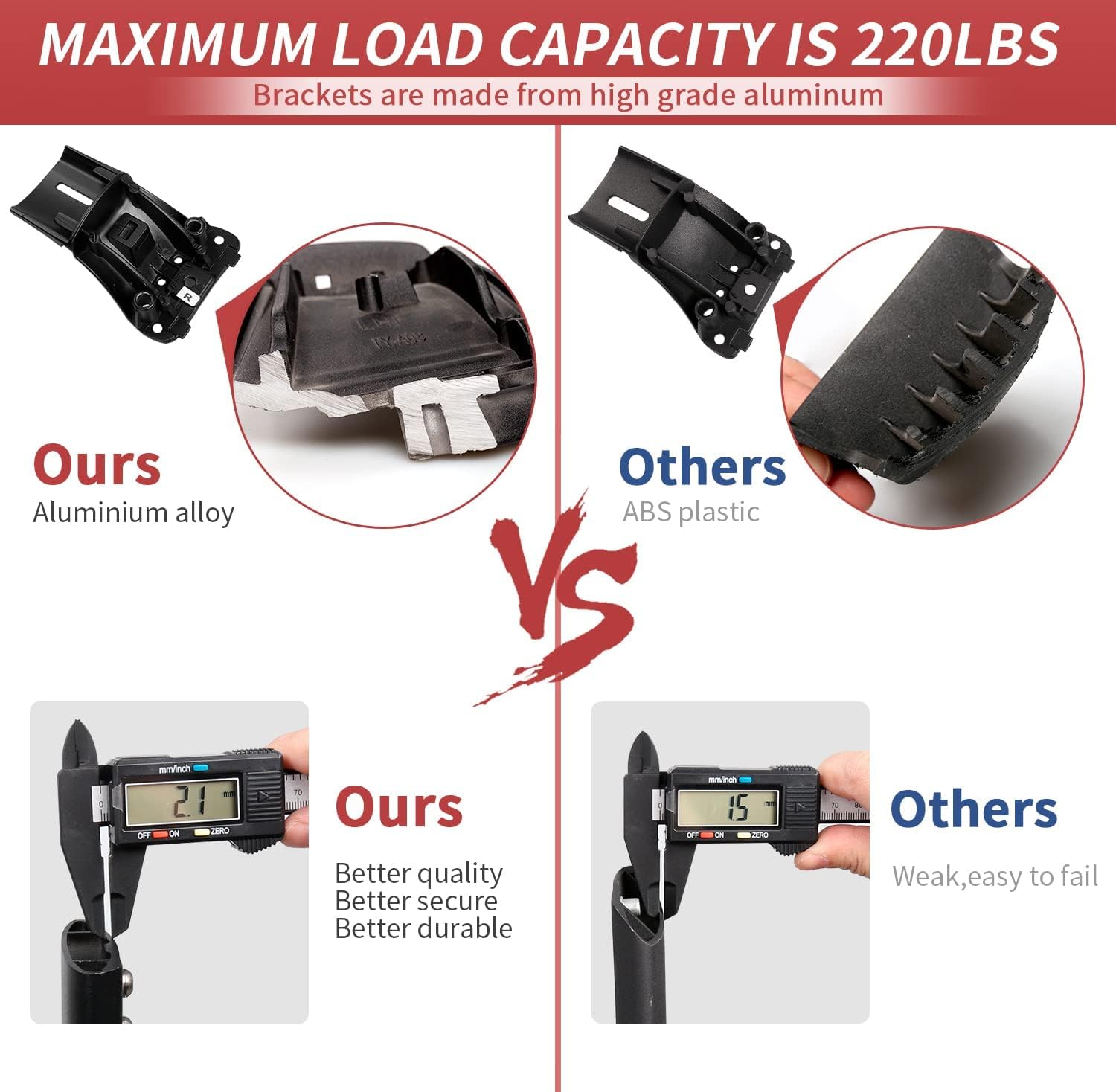 - ăExceed OEM parts in securest and strongestăDie-casting aluminum brackets and upgraded heavy duty 2.1mm thickness aluminum bar which add to extra load capacity and durable, better than most in the market. Metal mechanism lock system offers 100% secure for anti-theft and durable. Max load capacity is 220lbs (100kg), do not worry about the heavy luggage.