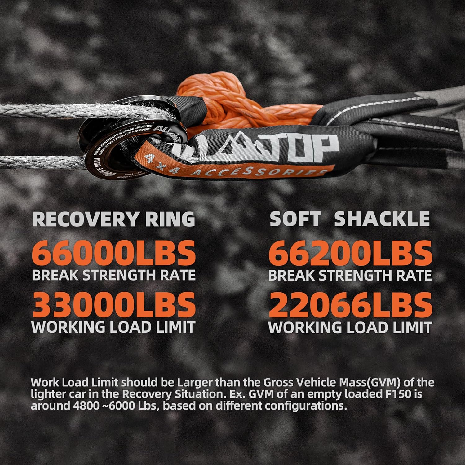 - 【LIFETIME WARRANTY】To join ALL-TOP's 200,000+ Community Today, our Reliable Overland Products support all Pro Players over the world. We persistently improve our Overland Products & After-Sale Services to ensure your 100% Satisfaction & Experience. ALL-TOP Synthetic Soft Shackle & Recovery Ring Kits are provided with 99-Year / 999-Month Hassle-Free Warranty and Lifetime Customer Support.