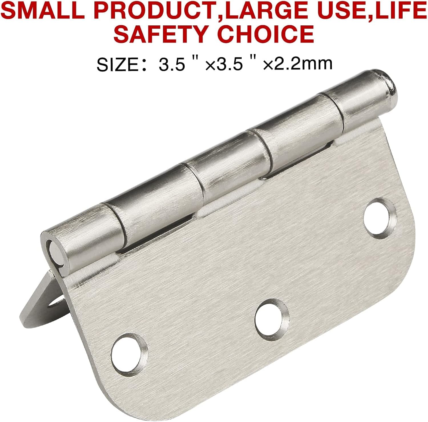 - Door hinges brushed nickel with rounded corners and 6 holes for front/indoor/outdoor door, cabinet, wooden box.