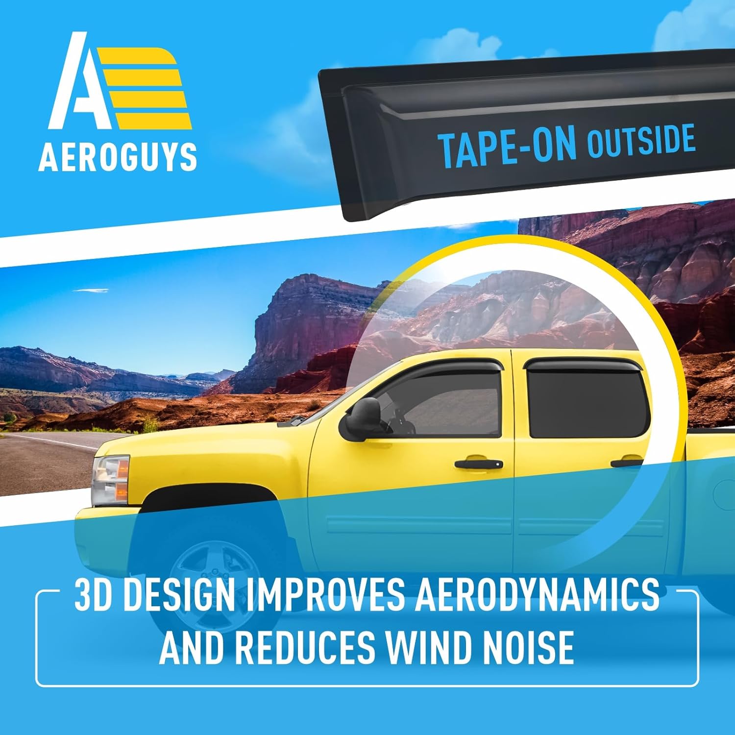 - No Tools Needed, Quick and Easy Assembly β These rain guards are very easy to fit. TAPE-ON INSTALLATION provides perfect fit for your truck. Just slip it onto your carβs window and your job is done within minutes. There is no drilling or no tools required. Be sure that AEROGUYS window deflectors are water resistant, sun protective and will not bend, break or crack regardless of the weather conditions.