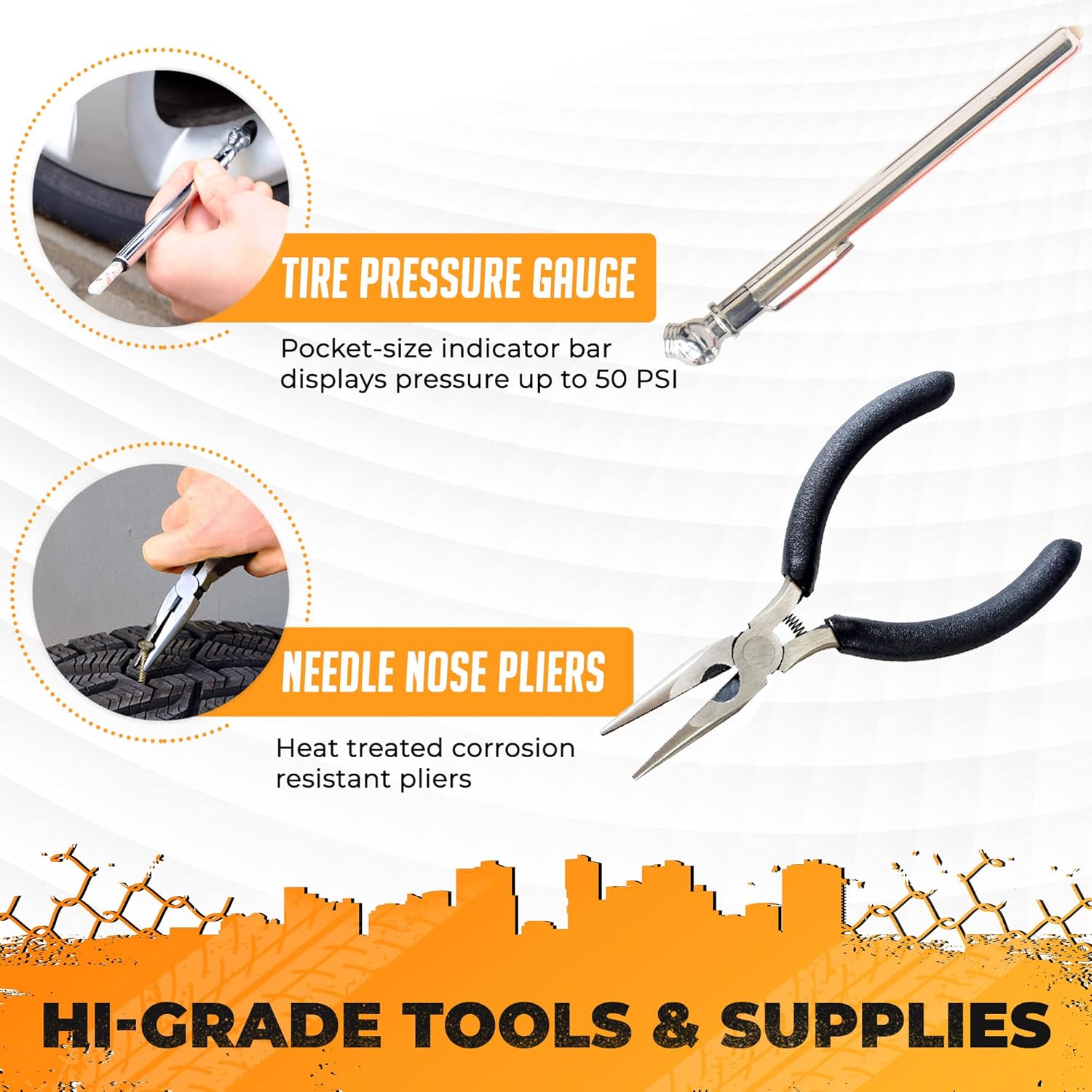 - Reliable tools: Durable steel T-tools and heat-treated pliers ensure a safe and easy tire plug repair process