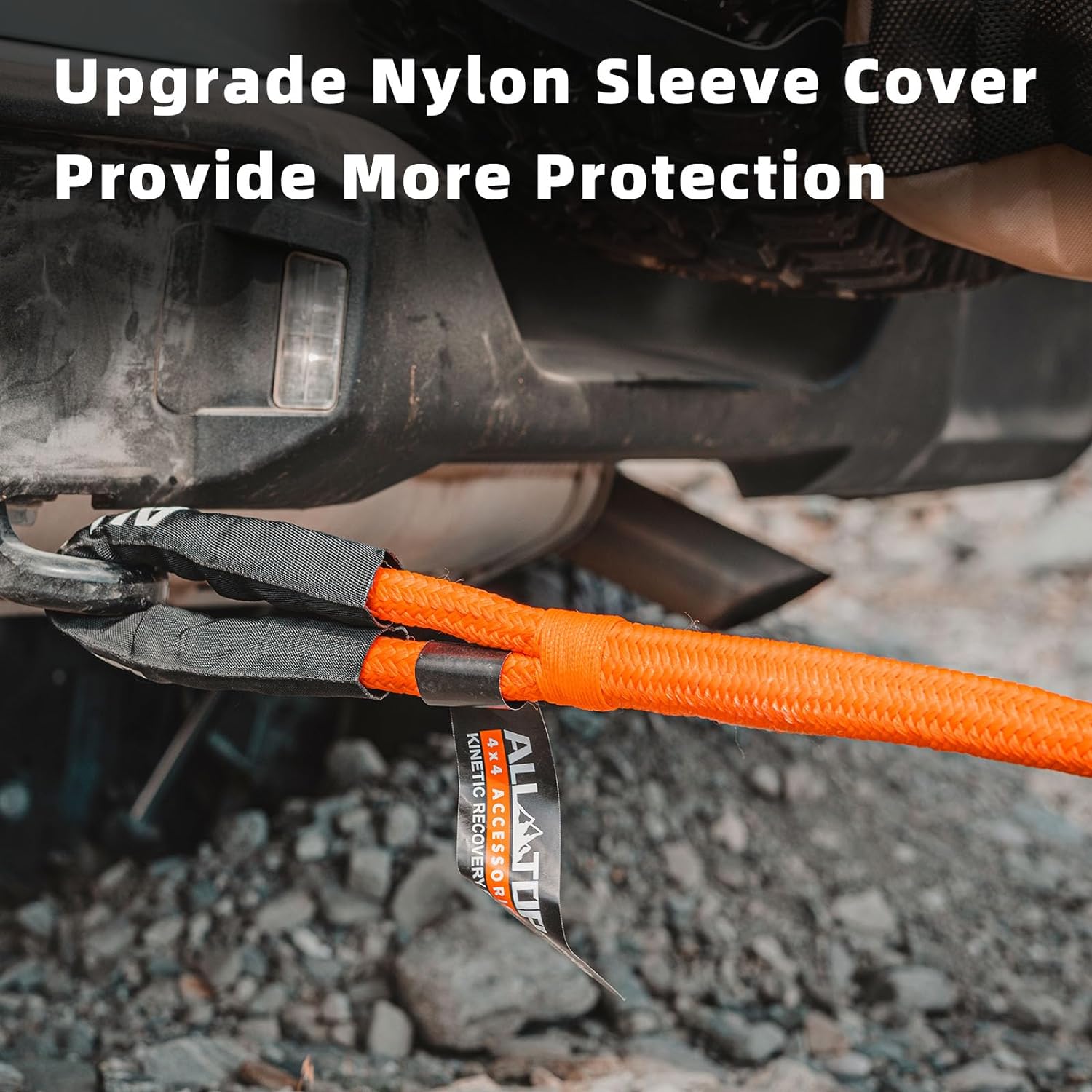 - 【WHY YOU NEED IT】 Four-wheelers got stuck in sticky mud, Overlanders lost tire traction in sand dunes, Rock Crawlers lacking of engine torque to go over large boulders. A set of ALL-TOP Kinetic Recovery Rope will settle all these up by its Kinetic Snatching Force. And such perfect recovery gear is just kept in a rain-proof easy carry bag.