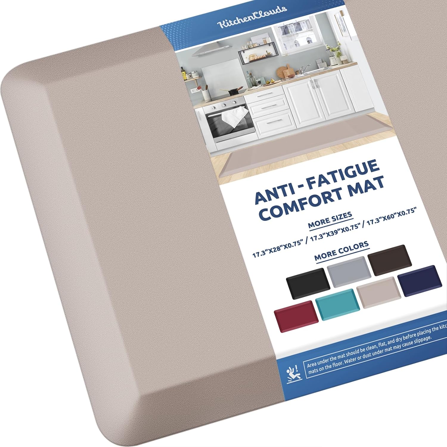 KitchenClouds Kitchen Mat Cushioned Anti Fatigue Kitchen Rug 0.8inch Waterproof Non Slip Kitchen Rugs and Mats Standing Desk Mat Comfort Floor Mats for Kitchen Sink Office (17.3"x60",Khaki)