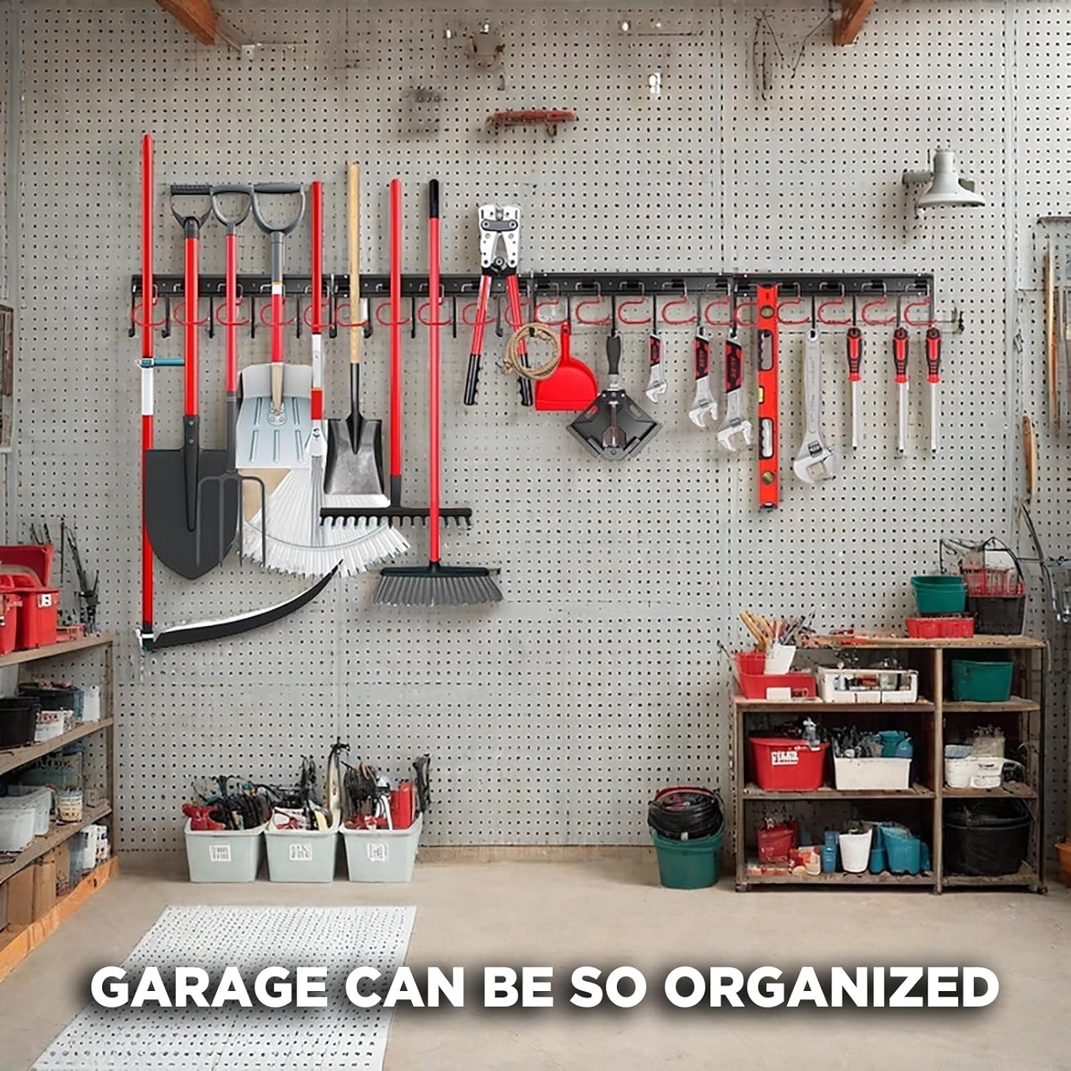 68" All Metal Garden Tool Organizer - Sturdy Garage Wall & Shed Organization System - Hooks for Shovel, Broom, Rake & More