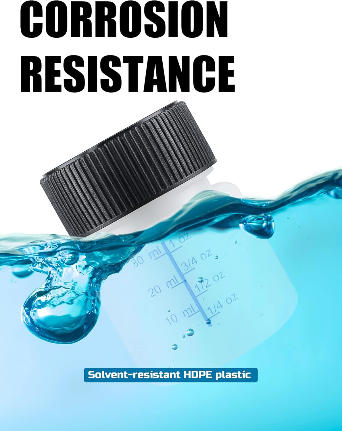 - Durable Material: The set contains 50 bottles made of solvent-resistant HDPE plastic material. The threaded ring layer inside the cap is made of flexible plastic, which is well sealed and will not loosen