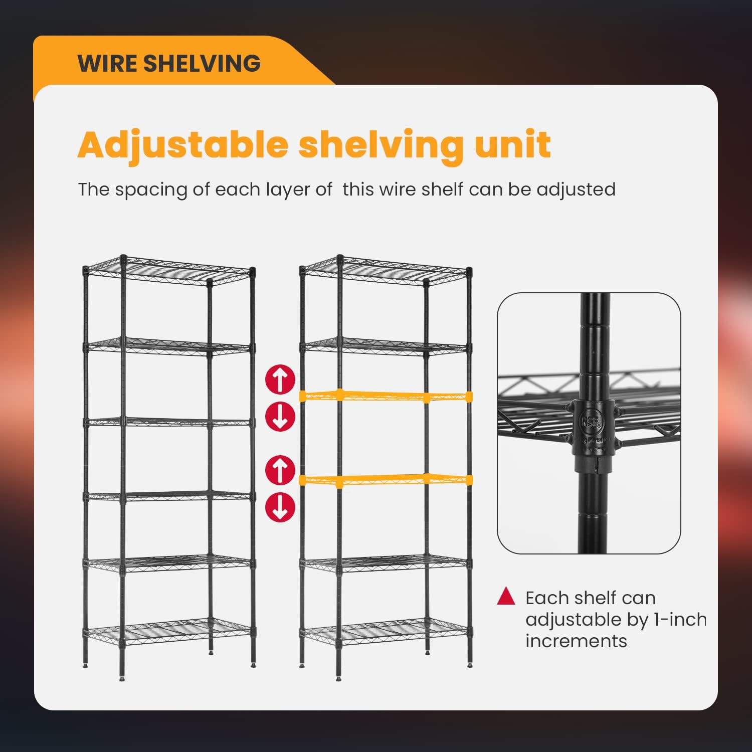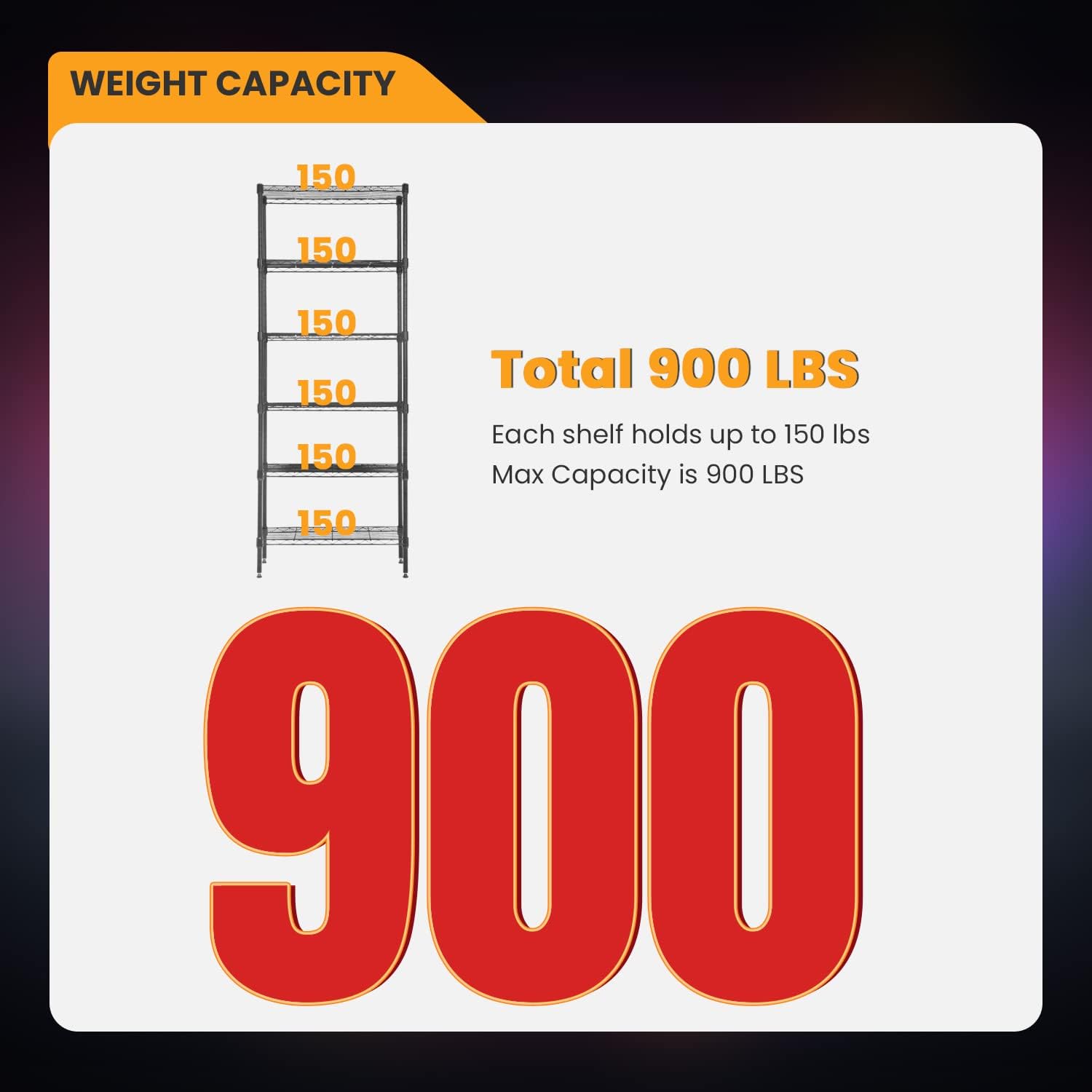 - ✔【STRONG WEIGHT CAPACITY】 Each shelving can hold 150 pounds (evenly distributed), and the total maximum load weight of the storage shelves for small places is 900 pounds. The shelves for storage for kitchen can put some commonly used living objects on it without worrying about the deformation of the storage shelves.