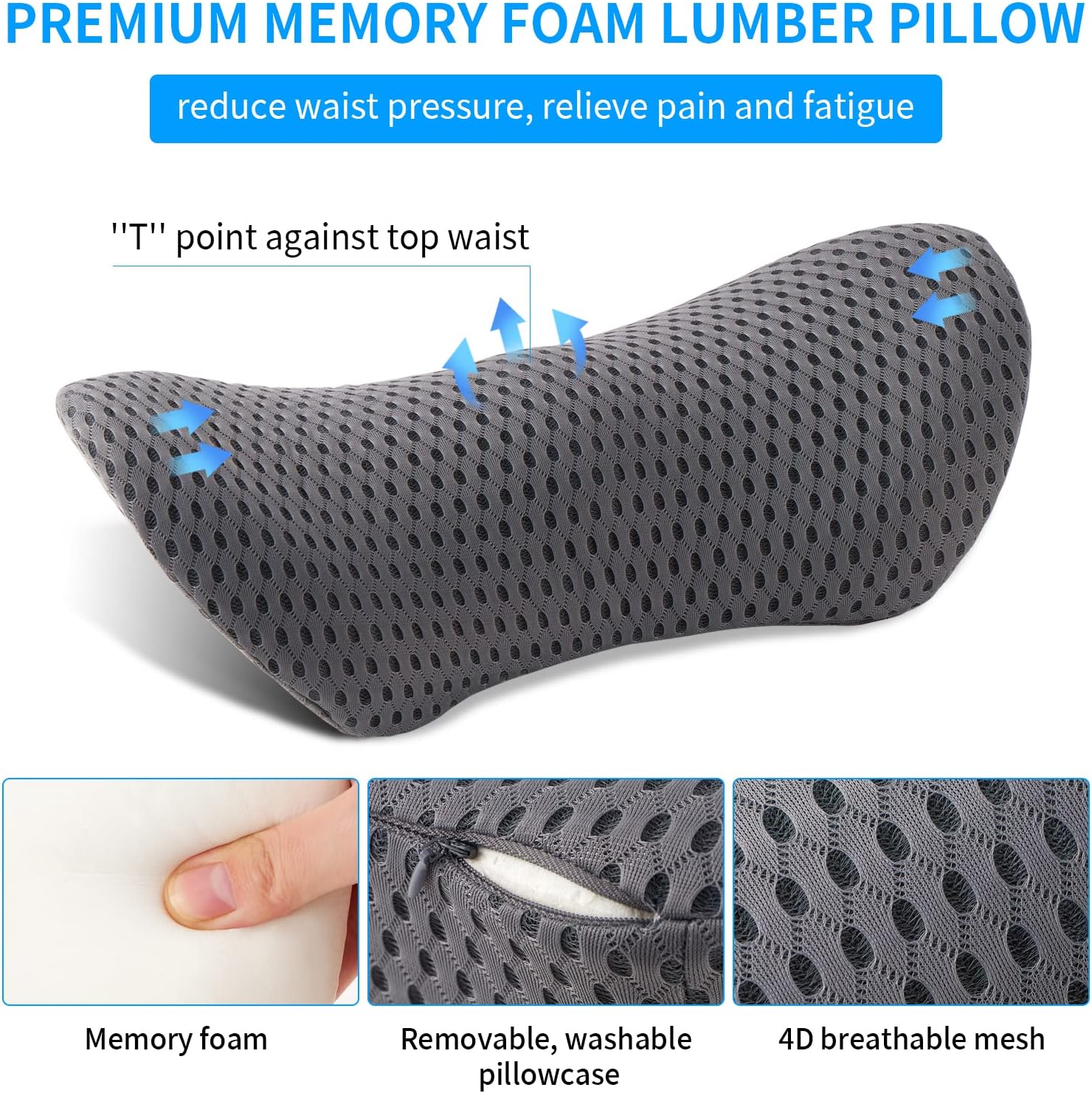 Lumbar Pillow, Memory Foam Lumbar Support Pillow for Office Chair and Car Seat, Back Support Pillow for Lower Back Pain Relief, Support Cushion Back Pillow for Sleeping, Driving, Resting