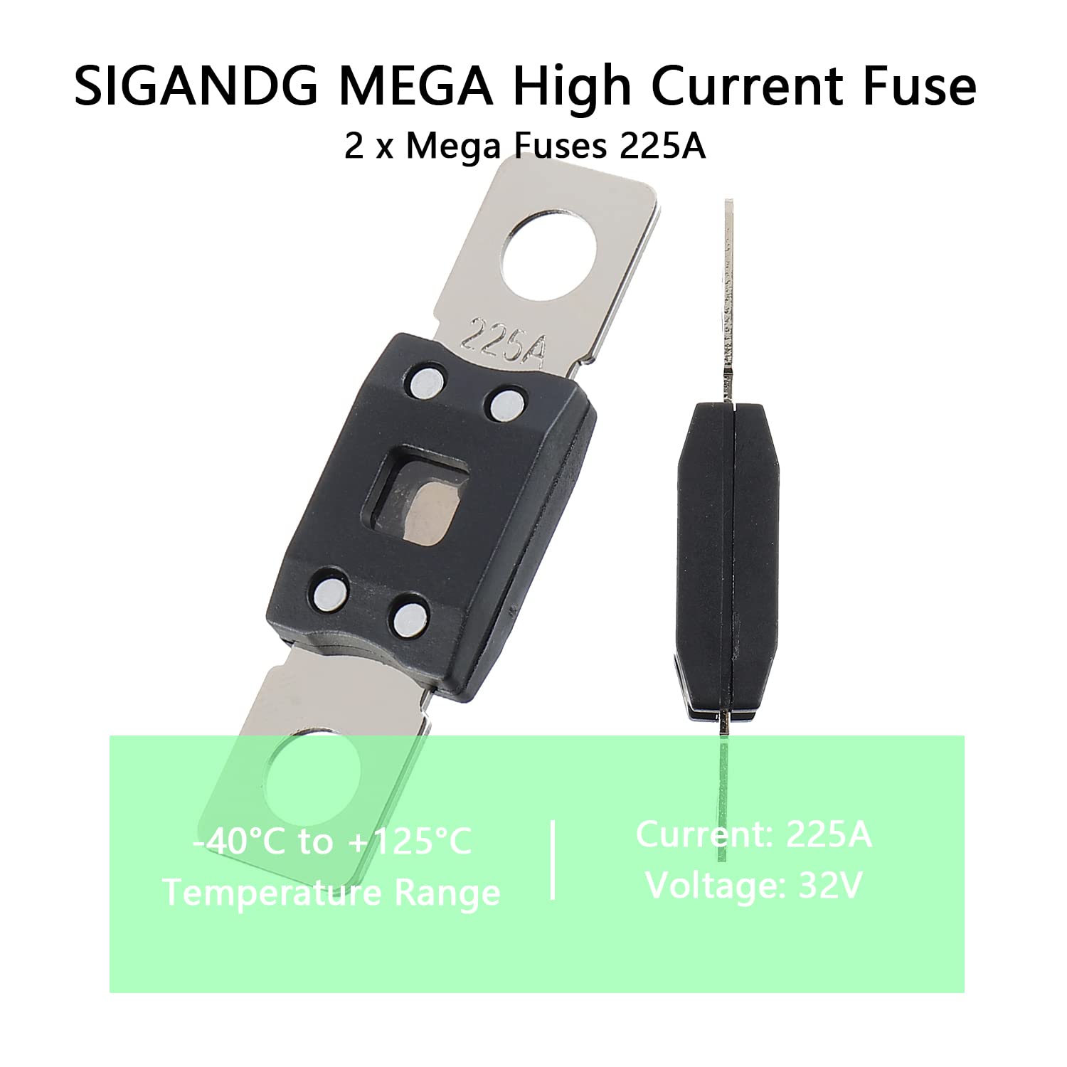 225A MEGA High Current Fuse - 225 Amp Bolt-on Fuse for Cars, Trucks, Construction Vehicles, Buses, Caravans (2 Pcs)