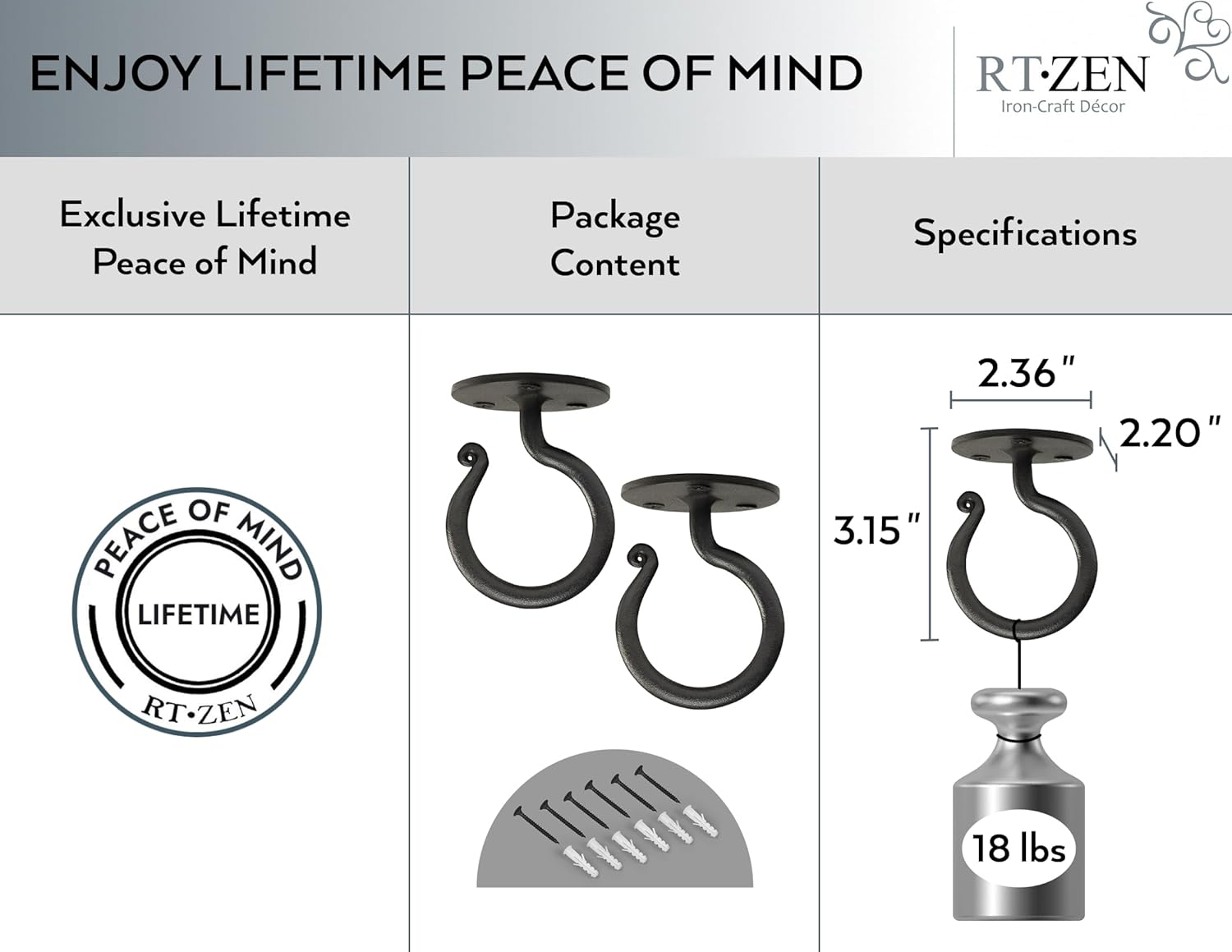 RTZEN Plant Hangers Outdoor or Indoor - Wrought Iron Metal Hanger Indoor Hook - Heavy Duty Wall Bracket Hooks for Hanging Plants Baskets Lanterns Wind Chimes - 2 Pack (Large Black Ceiling Hooks)