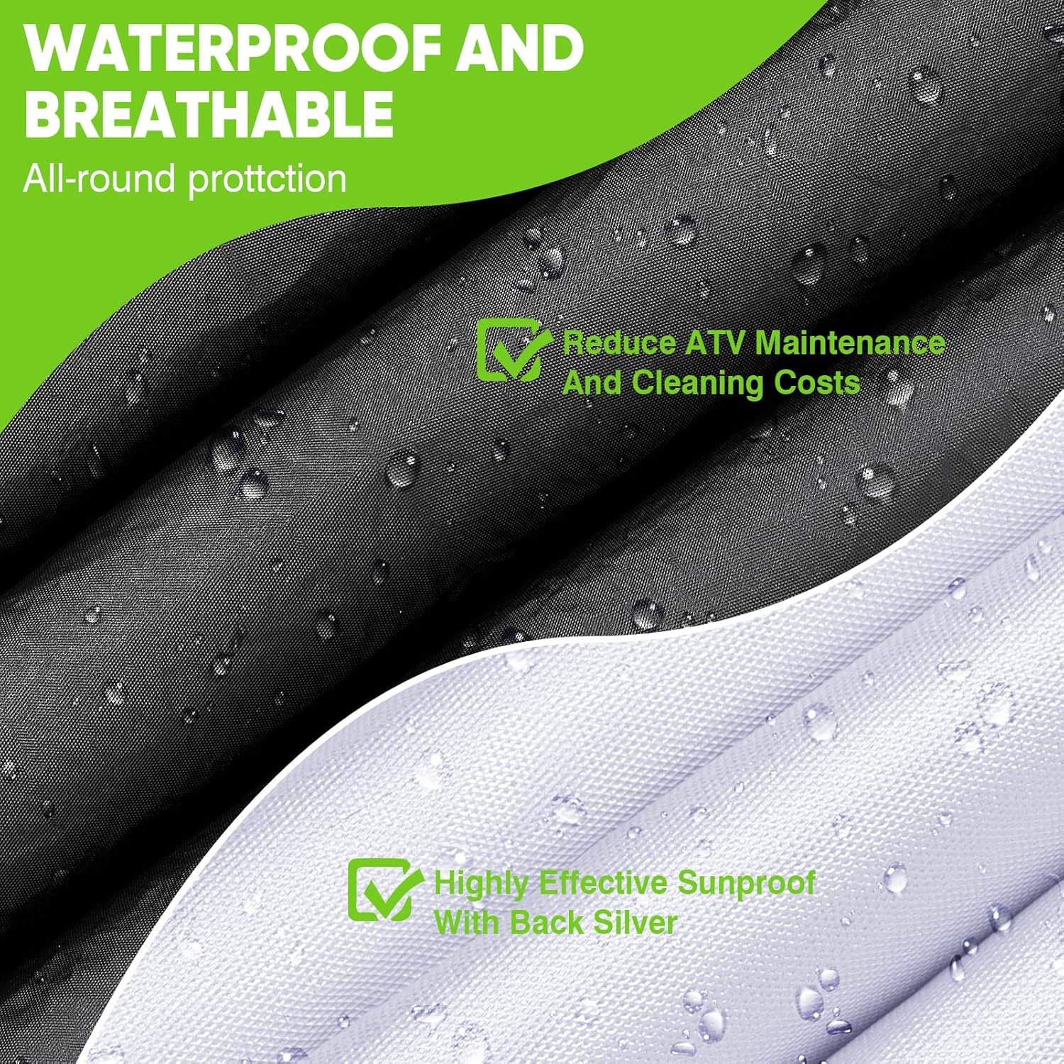 - Quality Material - NEVERLAND ATV cover is made of high-quality polyester fabric, which is more tear-resistant, wear-resistant, anti-ultraviolet and weather-resistant. ATV cover waterproof heavy duty design protects your ATV from dust, rain, heat, tree sap, damaging UV rays and bad weather