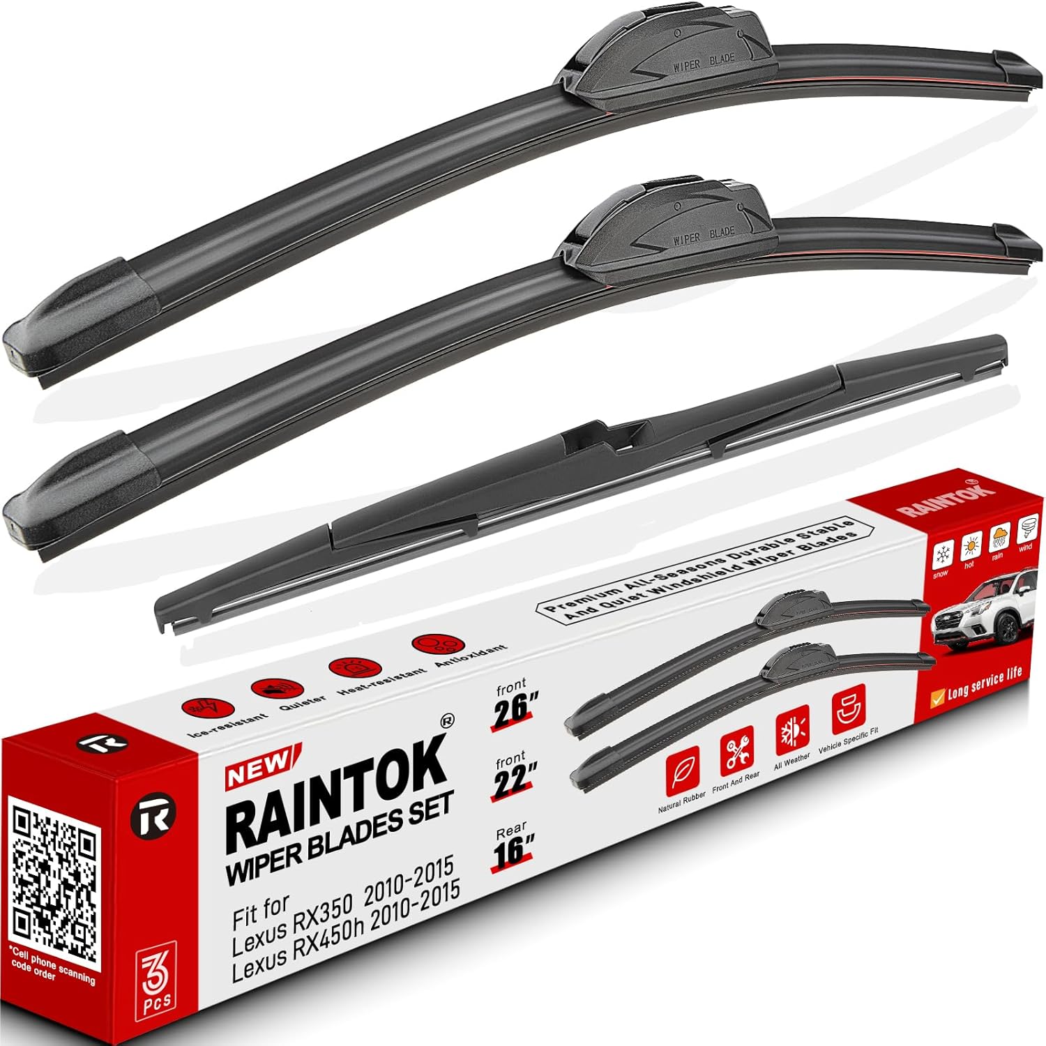 - {FITMENT1}: Replacement for 2010 2011 2012 2013 2014 2015 Lexus RX350 26inch + 22inch front with 16inch rear windshield wiper blades.