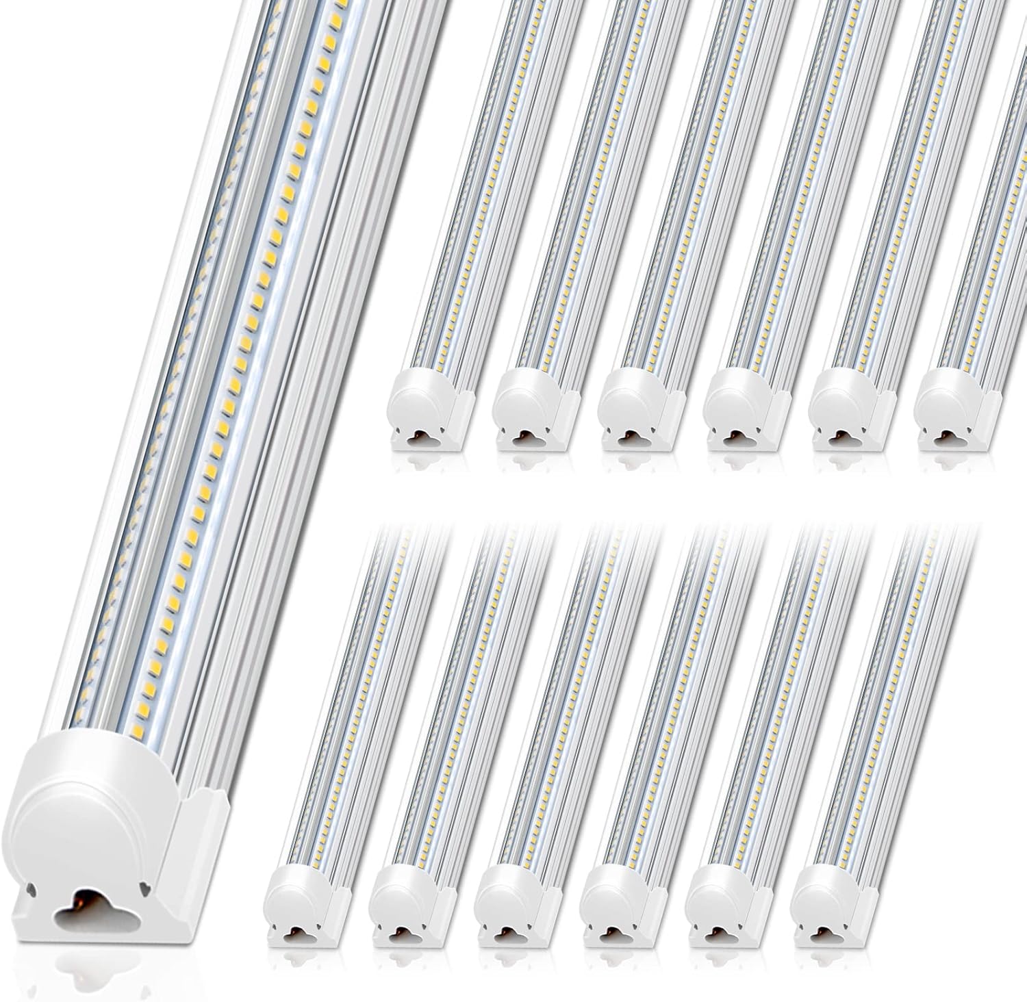 - Scientific Design: The V-shaped 8FT LED shop lights are designed with a wide 270-degree beam angle and dual-row LED chips with up to 816 LEDs per light, providing brighter and more efficient lighting for even the darkest corners of your space