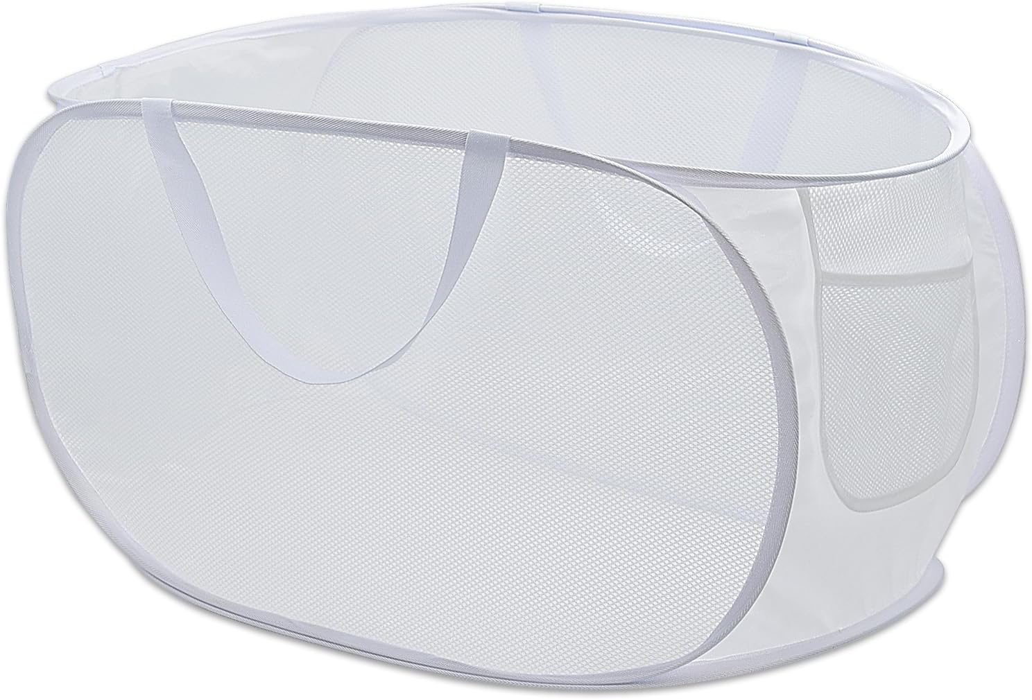 HONOMA Sturdy Mesh Laundry Hamper Basket Bag,Pop up Basket with Side Pocket for Laundry Room, Bathroom, Kids Room, College Dorm or Travel (Pop Horizontal, White)