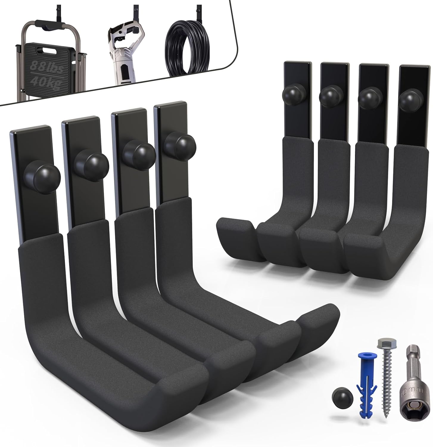 8 Pack Garage Storage Hooks, Ladder Hangers, Steel Wall Mount Hooks, Utility Hooks for Hanging Heavy Duty Shed Tools, Ropes, Garden Hoses, Shovel, Bulk Items, etc.(88lbs, 4Inch)