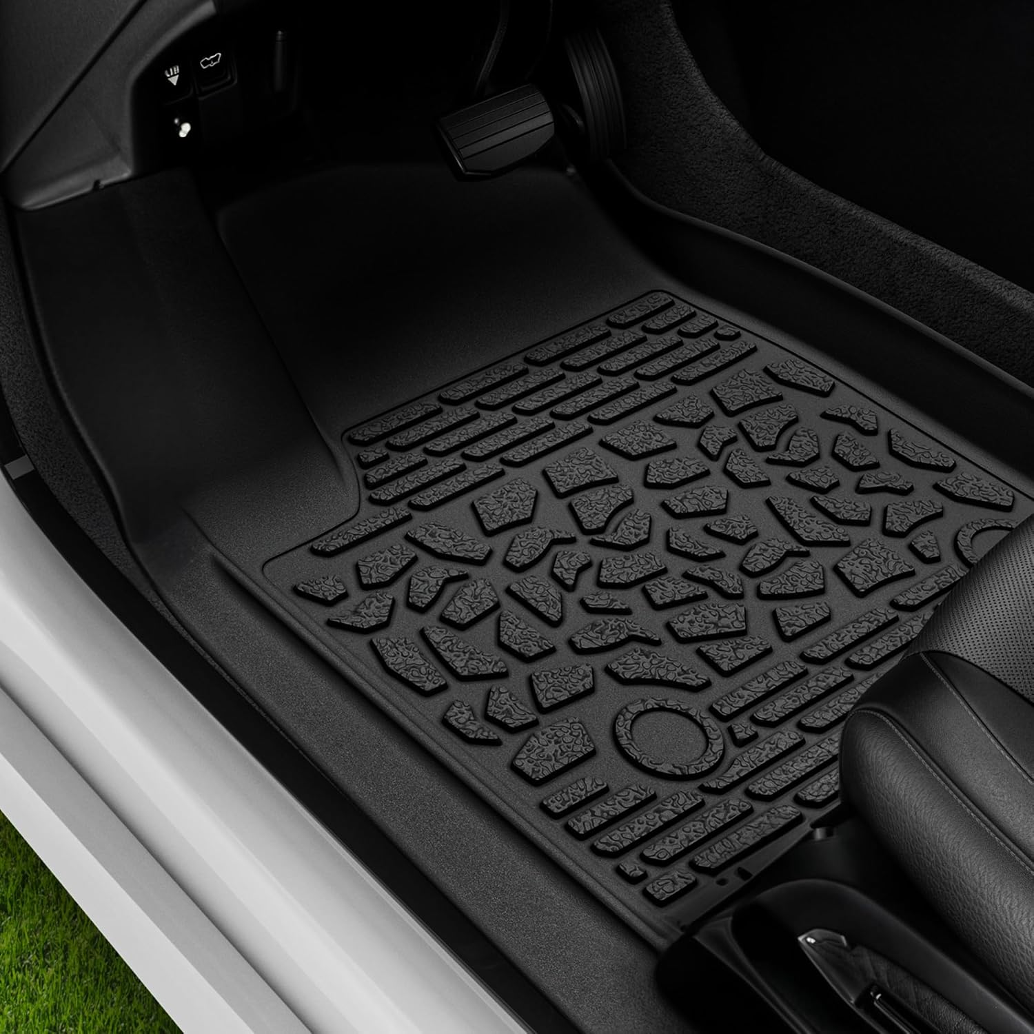 - Tailored Fit: Our floor mats's every detail is specially crafted using innovative vehicle scanning technology to ensure a custom fit; Features raised edges that accurately hug the contour of your vehicle to protect the carpet floor from bad weather, spills, and messes