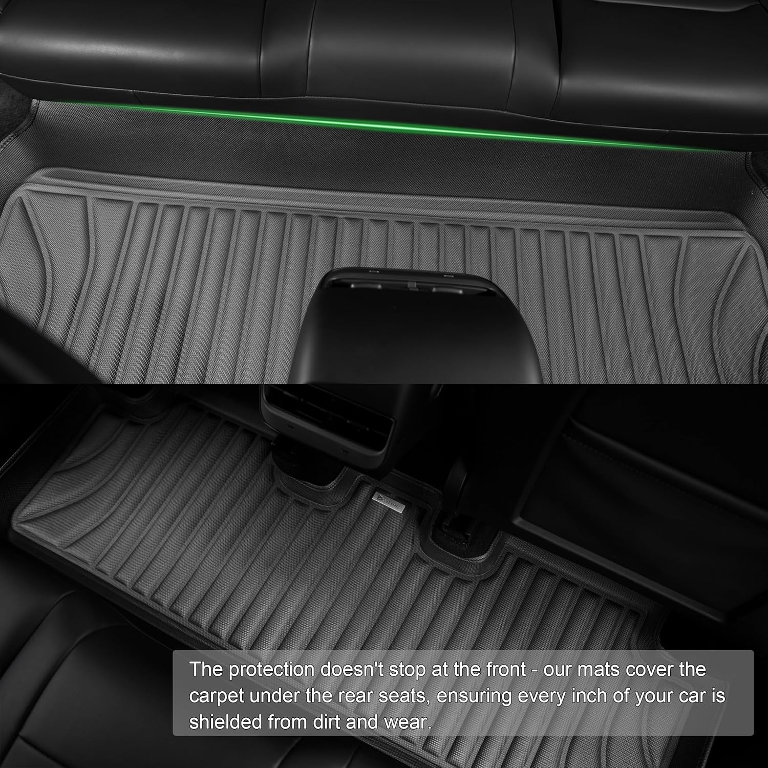 - TrackGuard Rail Protection--Our Tesla Model Y floor mats provide complete coverage of the often-overlooked seat rails and under-seat areas, preventing dirt, crumbs, and liquids from collecting in hard-to-reach spots. With Model Y floor mats, no space is left exposed.