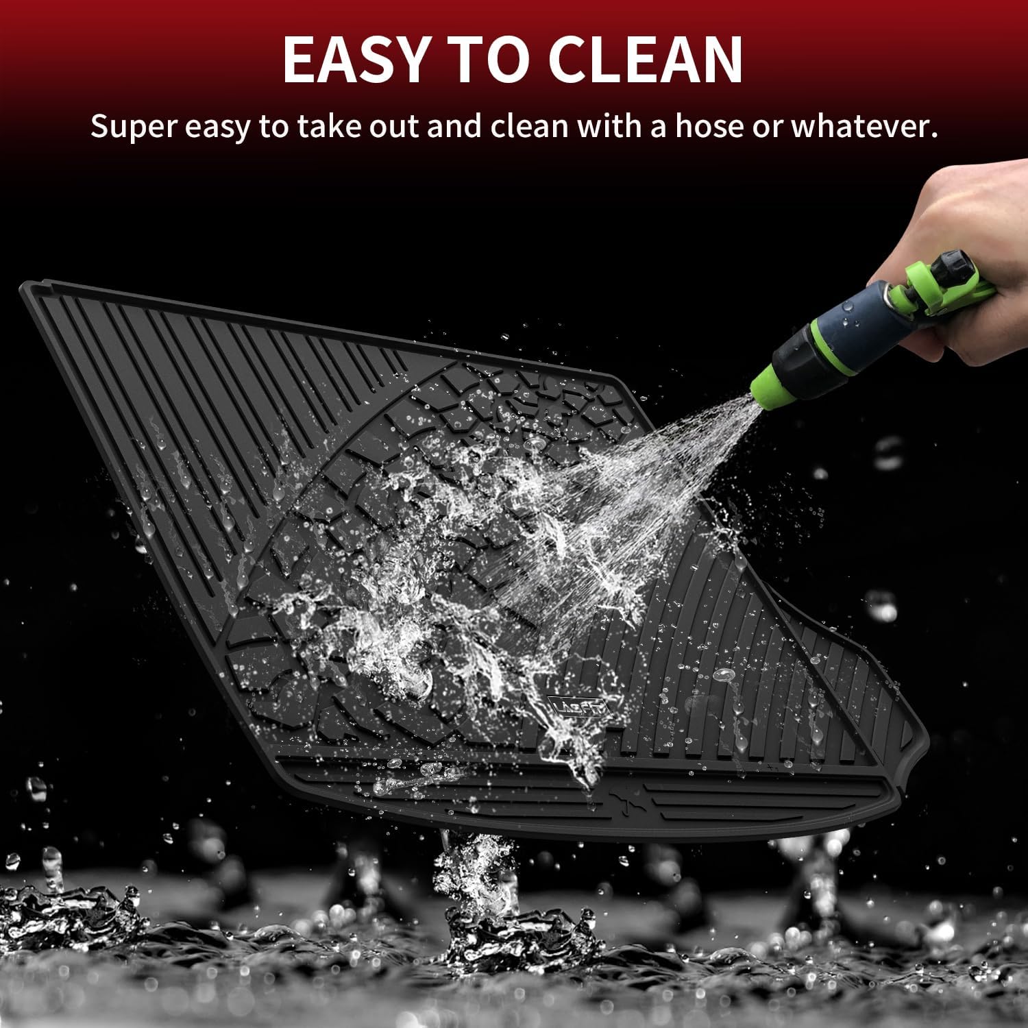 - ALL WEATHER PROTECTION - Shields your floor from dirt, mud, salt, rain, snow and even hot summer temperatures. Cleaning up daily wear and tear off our car mats is a breeze.