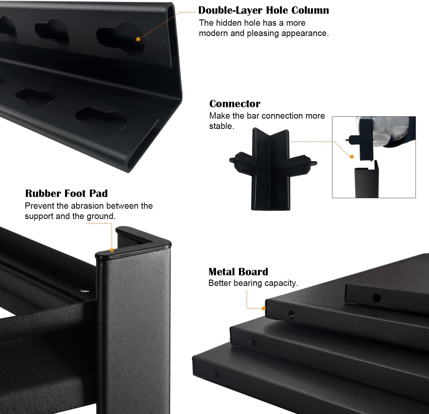 - BLACK POWDER-COATED: Black powder-coated steel construction for extra durability, this heavy-duty storage shelves boasts a moisture-resistant and water-resistant coating, ensuring easy cleaning and low-maintenance upkeep. Its sleek matte finish adds an industrial flair to any setting. And, when loaded, it didn’t rock or move at all.