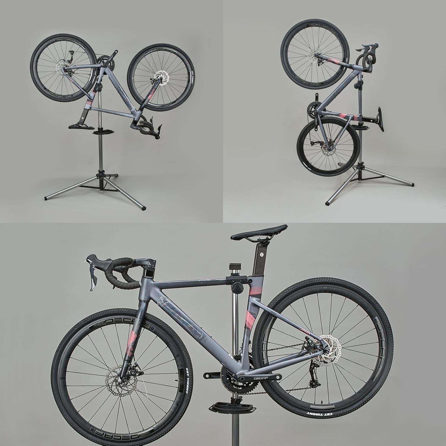 - ๐๐ฎ๐ฌ๐ญ๐จ๐ฆ๐ข๐ณ๐๐๐ฅ๐ - An adjustable height feature on the maintenance stand enables you to alter the height. Alongside a 360-degree swivel on the stand, find the perfect height and position to work on your bike. The Corki Cycles bike stand has 2 height clamps to tighten the stand and allow greater customization. Alter the height from 35.6" - 57.7" to fix and maintain your bike. With the main 360-degree directional clamp arm, clamp your bike from the top tube or central seat post tube.
