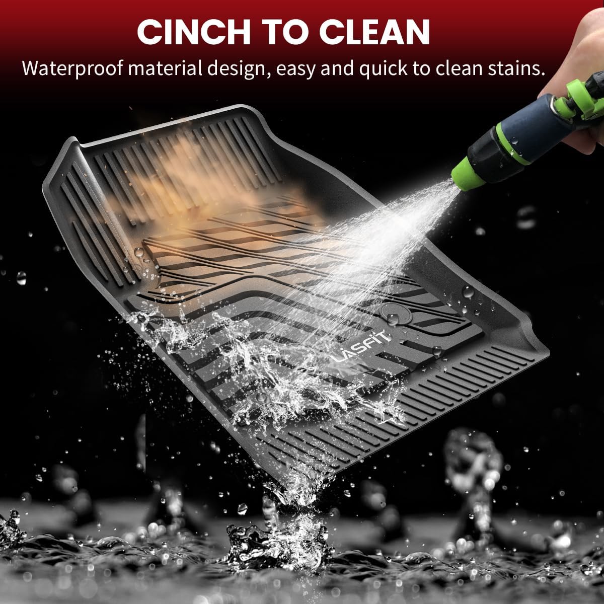 - ăDurable & Safe MaterialăLASFIT all weather floor mats use elastic TPE (Thermoplastic Elastomer), no foul odor is produced even at high temperatures, soft touch and exquisite finish. The LASFIT floor mats for cars are skid-proof and recyclable.