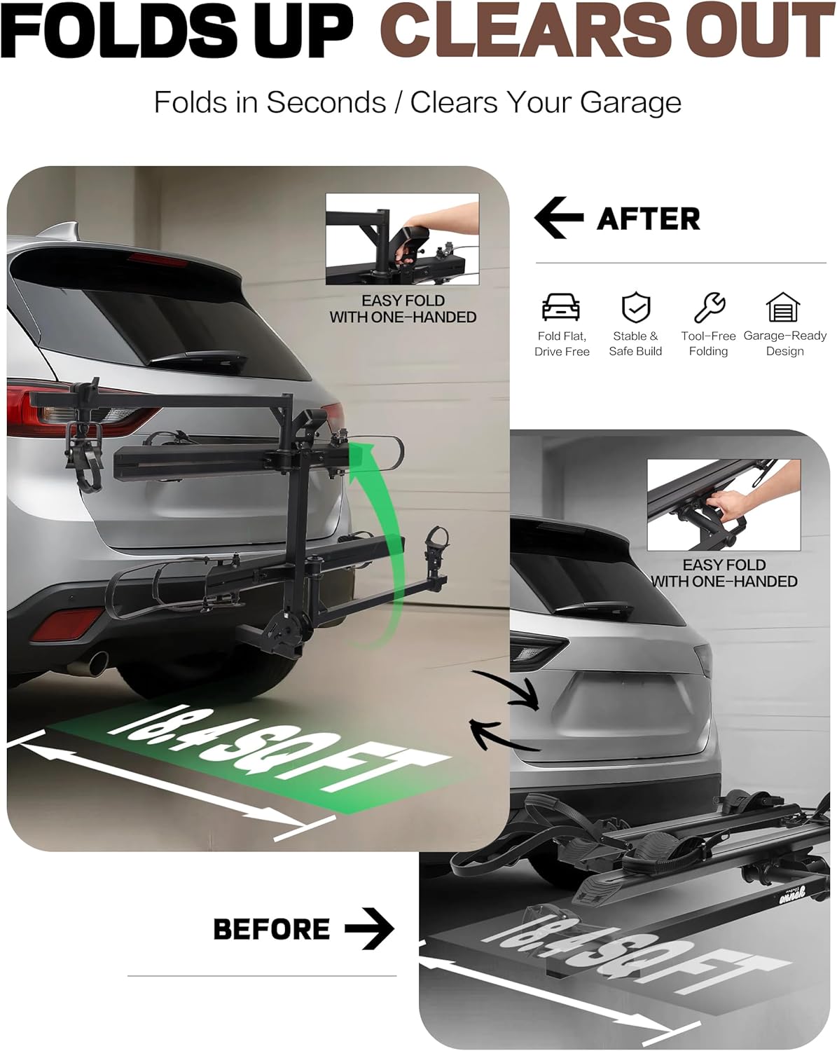 - 2 INCH HITCH RECEIVER: ONLY fits vehicles with 2" receivers, the rack is sturdy and does not wobble easily. Most parts come pre-assembled for easy installation. Parts including locking hitch pins, instruction manual and hardware.