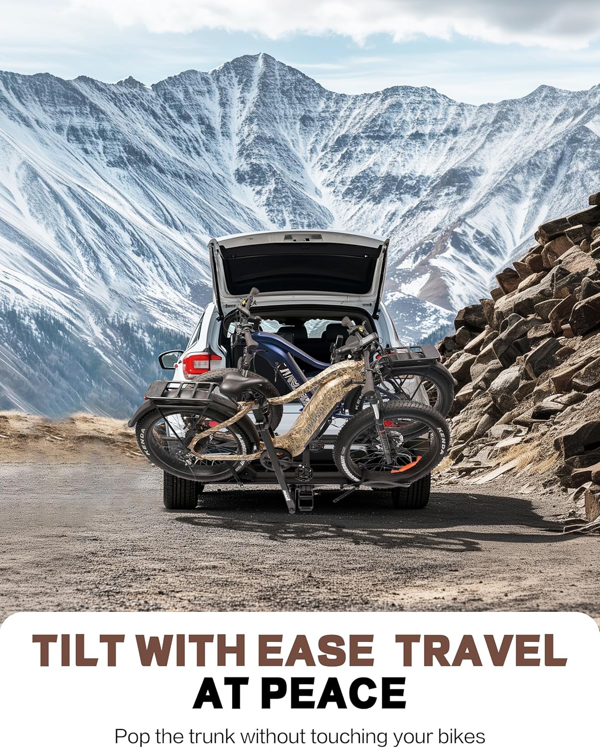 - SAFE AND SECURE ON OFFROAD: Comes with 2-arm fix, Anti-falloff 360° swirl structure and anti-wobble structure, that secure your E-bikes in place without swaying and knocking against vehicle.