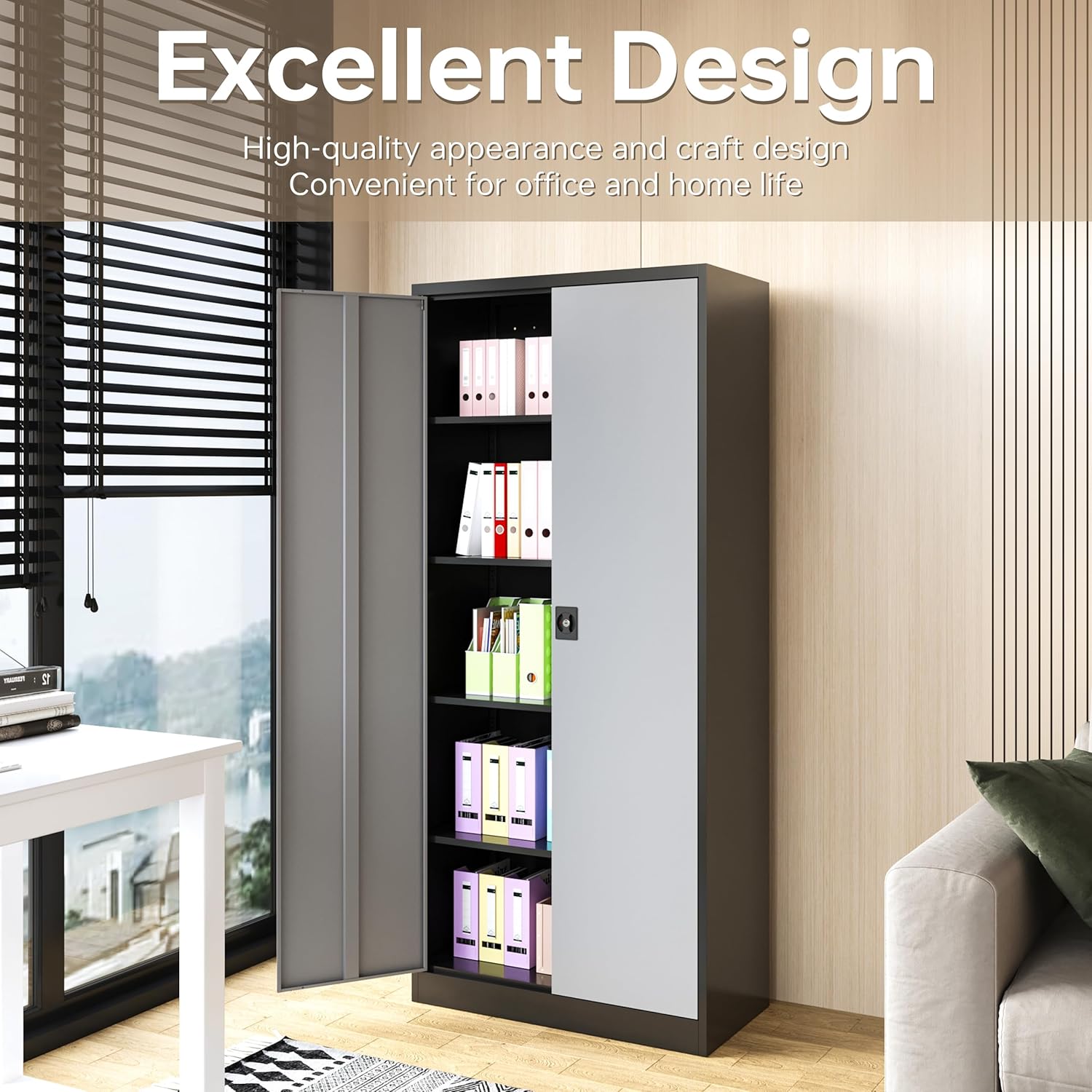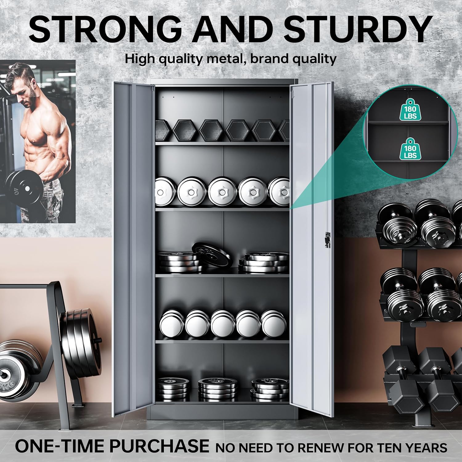 - Multifunctional Cabinet: The storage cabinet with doors and shelves have a lockable door with 2 keys and adopt a 3-point locking system, which allows you to store your valuables safely. This metal storage cabinet with doors and shelves can be used in the home, office, garage, warehouse, workshop, school, or anywhere you need additional storage.