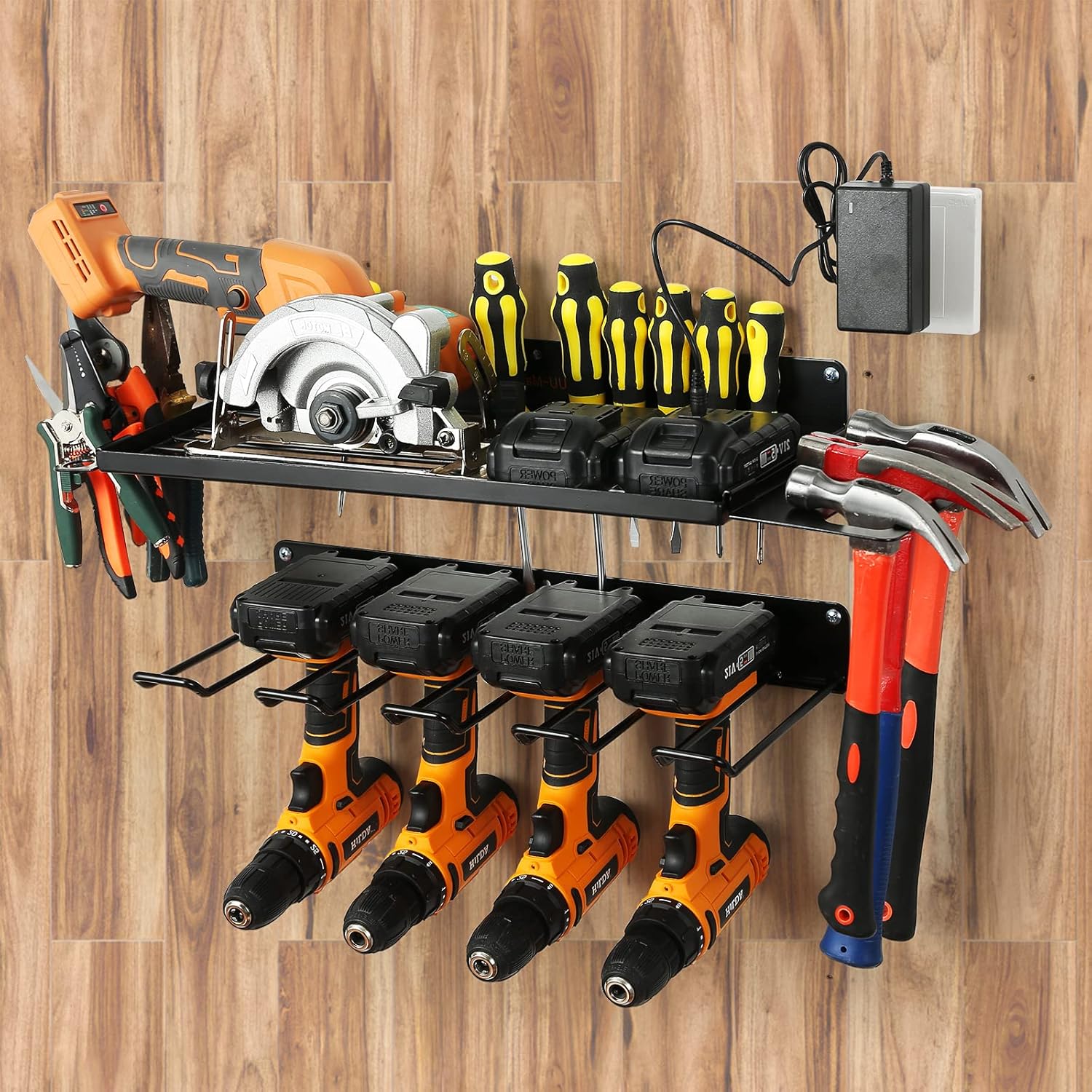 Power Tool Organizer for Garage Organization,Drill Holder Wall Mount for Tool Stoarge, Tool Organizers and Garage Storage Shelves for Charging.Heavy Duty With 4 Holders