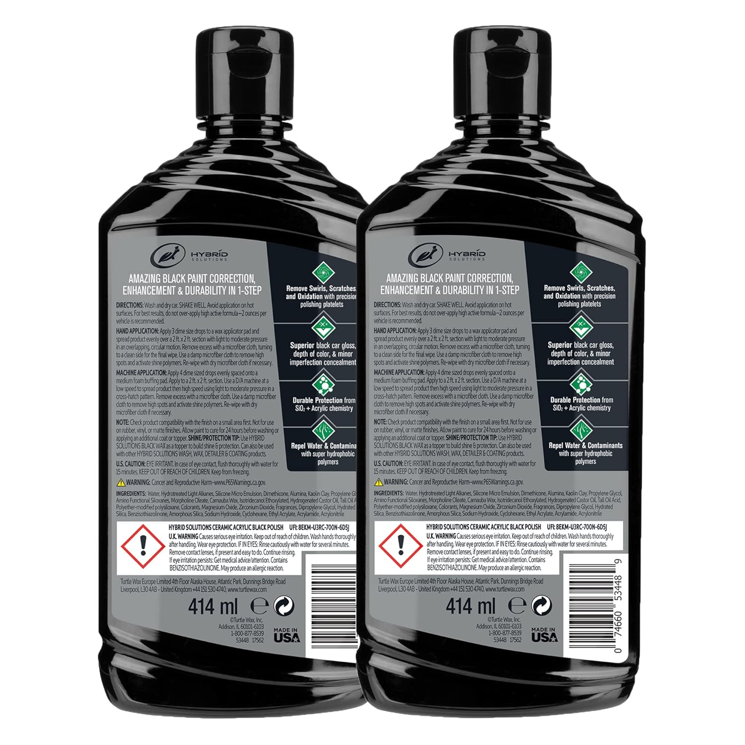 Turtle Wax 53894 Hybrid Solutions Ceramic Acrylic Black Polish and Wax Formulated for Black Car Paint, Removes Surface Scratches and Swirl Marks, Provides Water Repellency, 14 oz. (Pack of 2)
