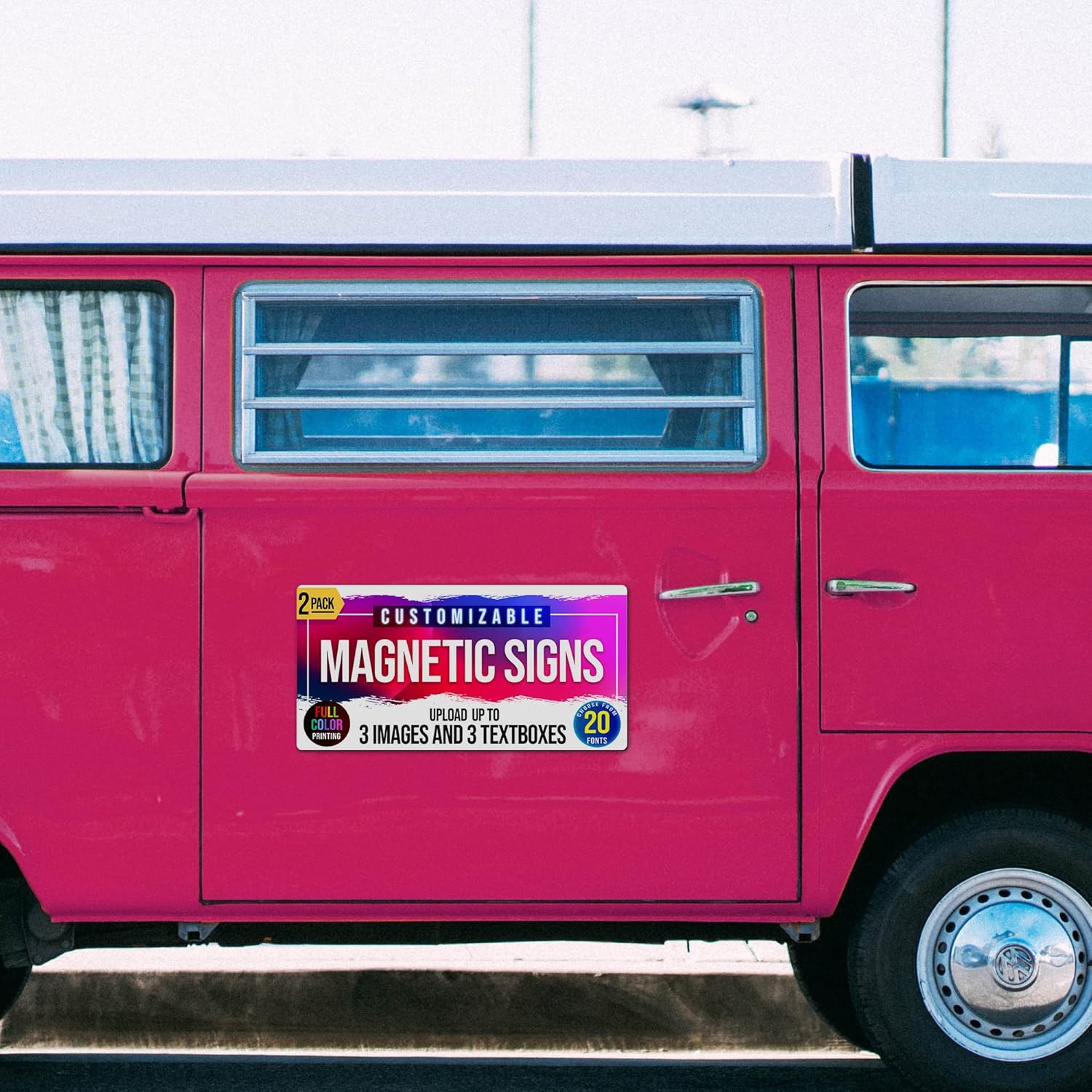 - STRONG AND DURABLE - With our customizable car sign, you will be able to take advantage of a new way to advertise your brand or business. These business magnets for cars, trucks and trailers are built to last. Our custom vinyl banner is weatherproof and will surely last long through all kinds of weather conditions.