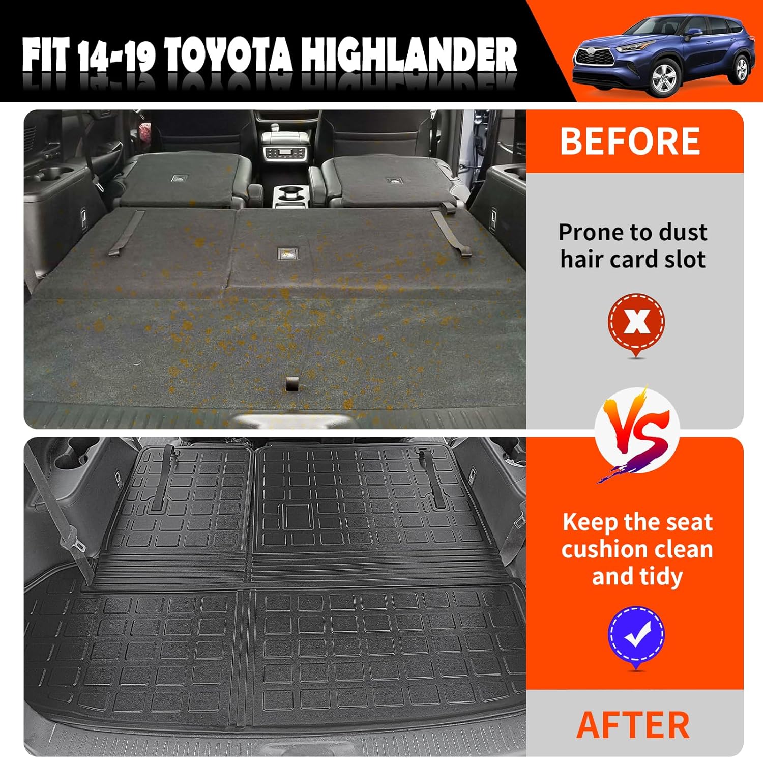 - Perfect Fitment:This trunk mat compatible with Toyota Highlander 2014 2015 2016 2017 2018 2019. Our mat is designed entirely by the body of the original car and fit for your car trunk excellently.