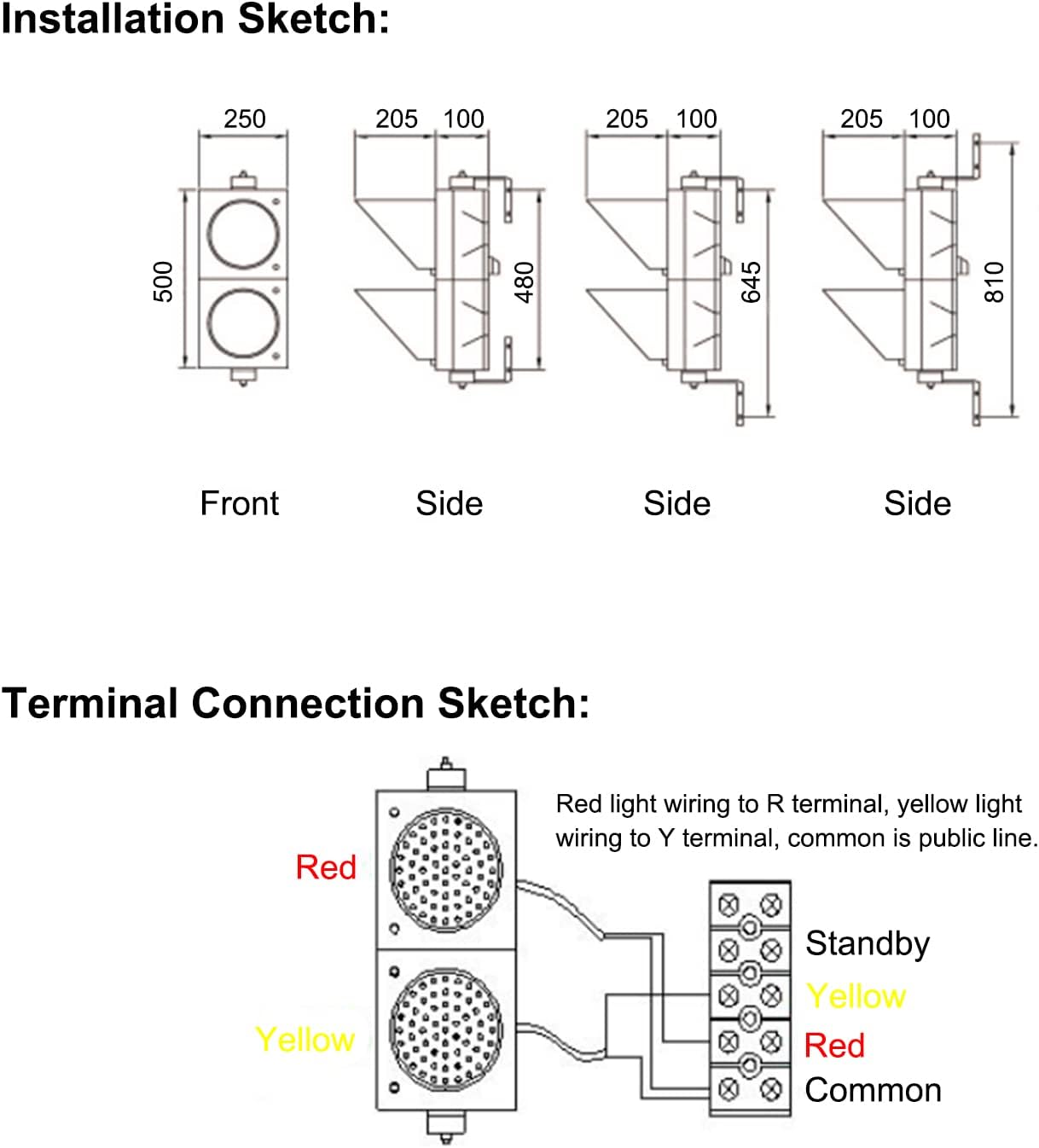 - WORKING VOLTAGE & EASY INSTALLATION: Operating voltage of 86-265 VAC, 50/60Hz; The installation can be horizontal or vertical. Red light to R terminal, yellow light to Y terminal, common is public line.