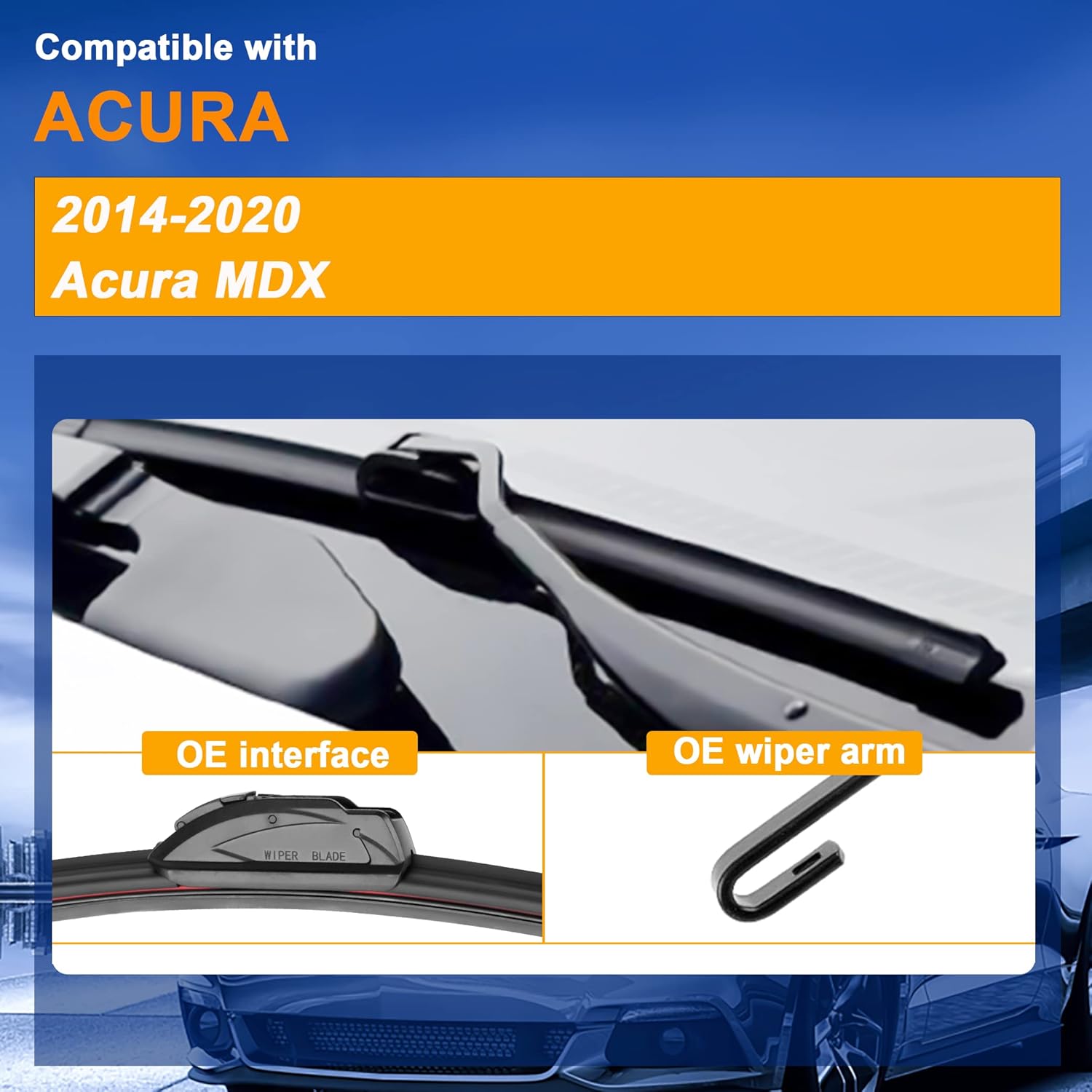 - {FITMENT}: Replacement for 2014 2015 2016 2017 2018 2019 2020 Acura MDX front rear windshield wiper blades.