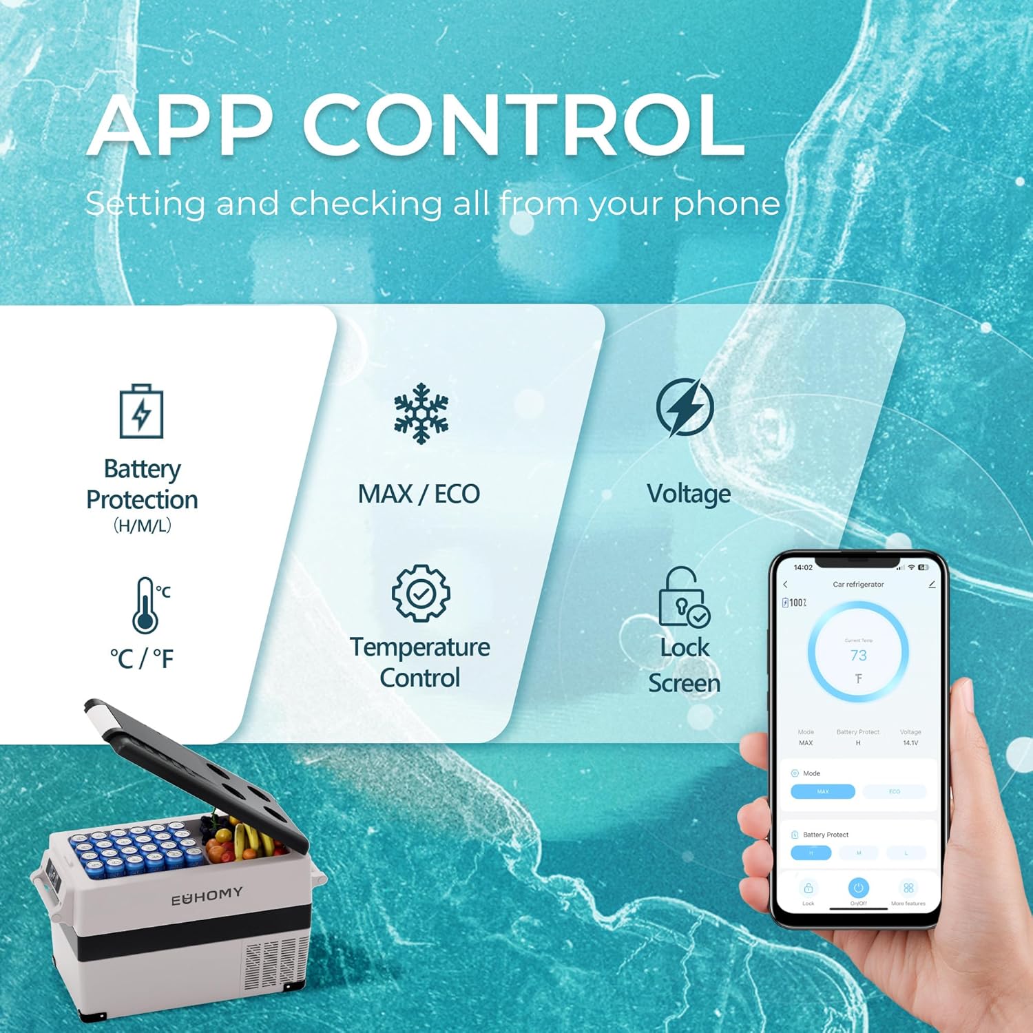 EUHOMY 12 Volt Refrigerator, 48QT(45L) Electric Cooler, 12V Fridge APP Control, 12V Cooler -4℉~68℉, Portable Freezer 12/24V DC 110-240V AC for Camping, Travel, Truck, Home