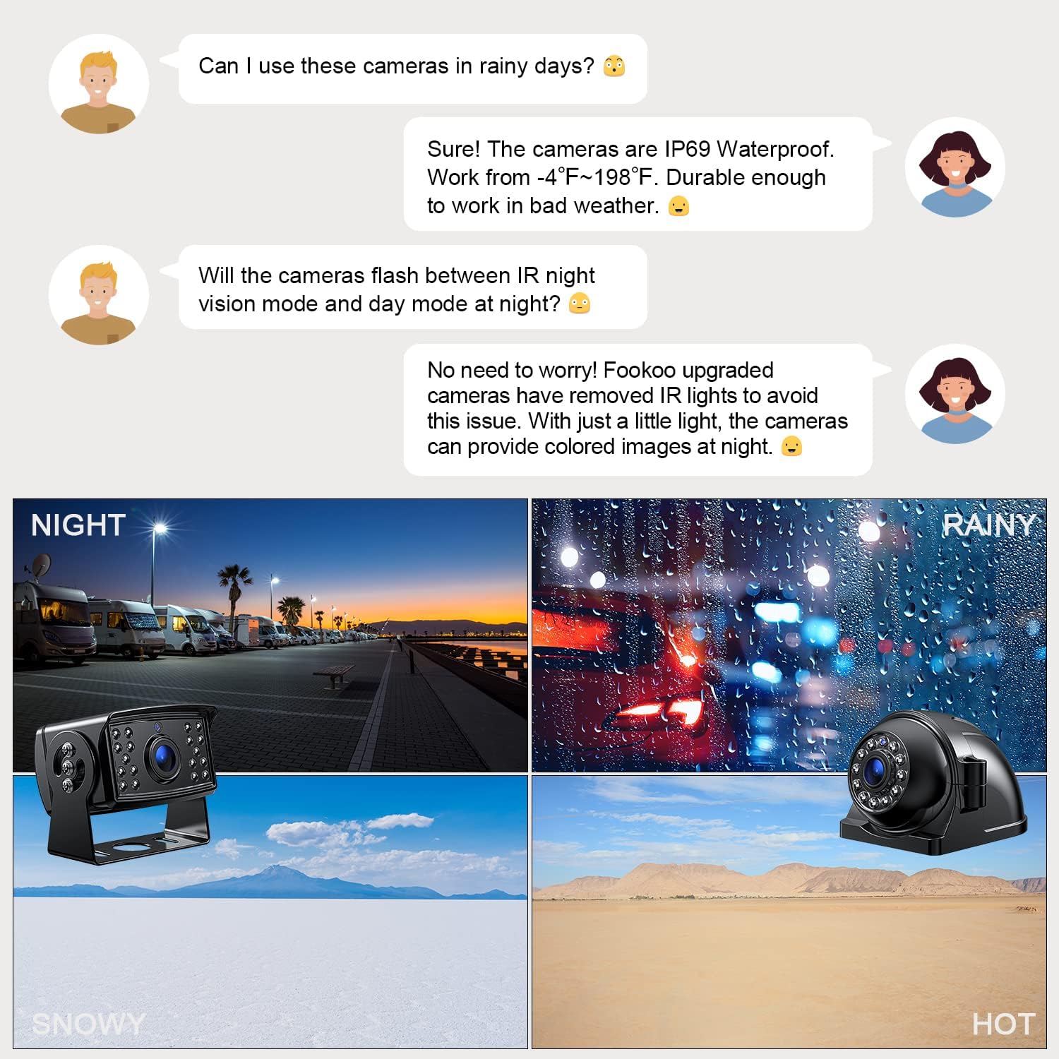 Fookoo HD 1080P 7" Wired Backup Camera System, 7-inch Quad Split Screen Monitor W/Recording, IP69 Waterproof Side & Rear View Cameras, Parking Lines for Truck/Trailer/RV/Tractor/ 5th Wheel (DY703)