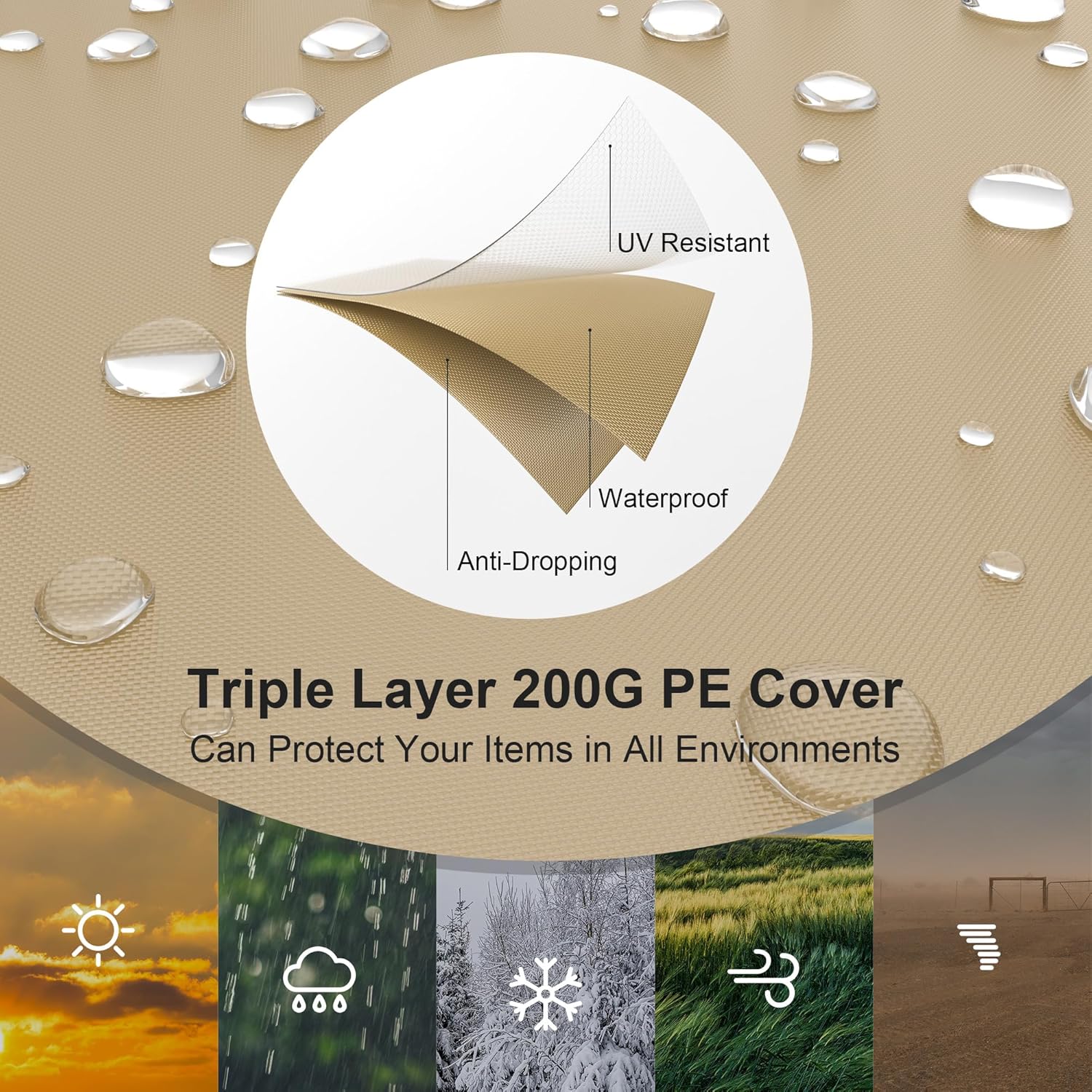 • 【Waterproof Fabric】200g High quality Polyethylene top cover of carport provides resistance to wind and rain; Providing up to 200 square feet of UV protection, Blocks 90% of sun's rays