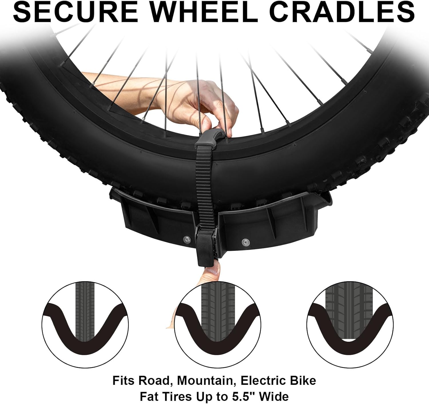 - β ANTI-SCRATCH: The trailer hitch bike rack features soft locking frame clamps and cradles with gear locking straps quickly secure your bicycle in place, and it also included a safety strap to protect your bicycles during transport and avoid damaging your car's paintwork.