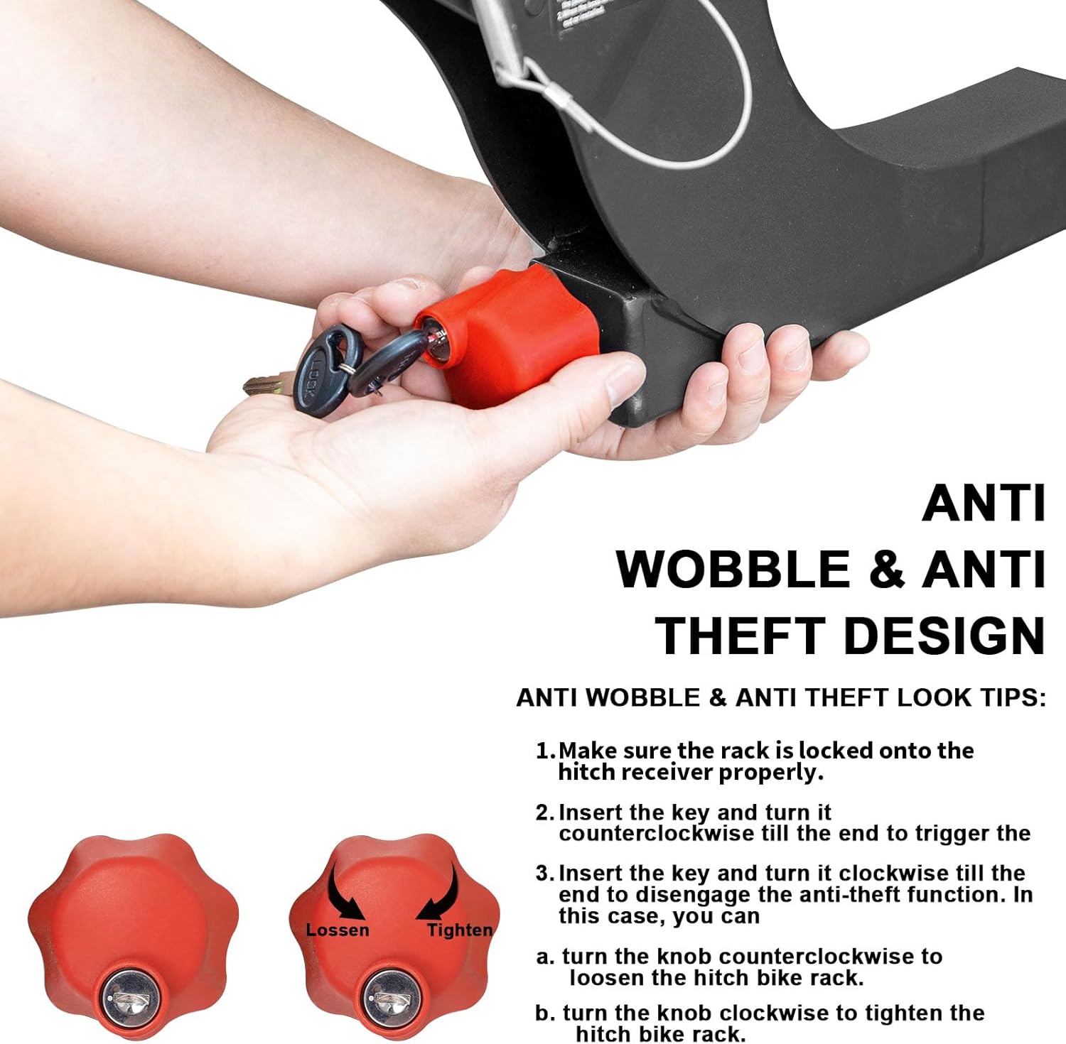 - β ANTI WOBBLE & ANTI THEFT DESIGN: The key locking device allows the rack to be tightened into 2 inch hitch receiver with a wobble-free installation, and the rack can be locked in place to provides more security. β For low step-through bikes, a top cross-bar needs to be purchased separately for compatibility.