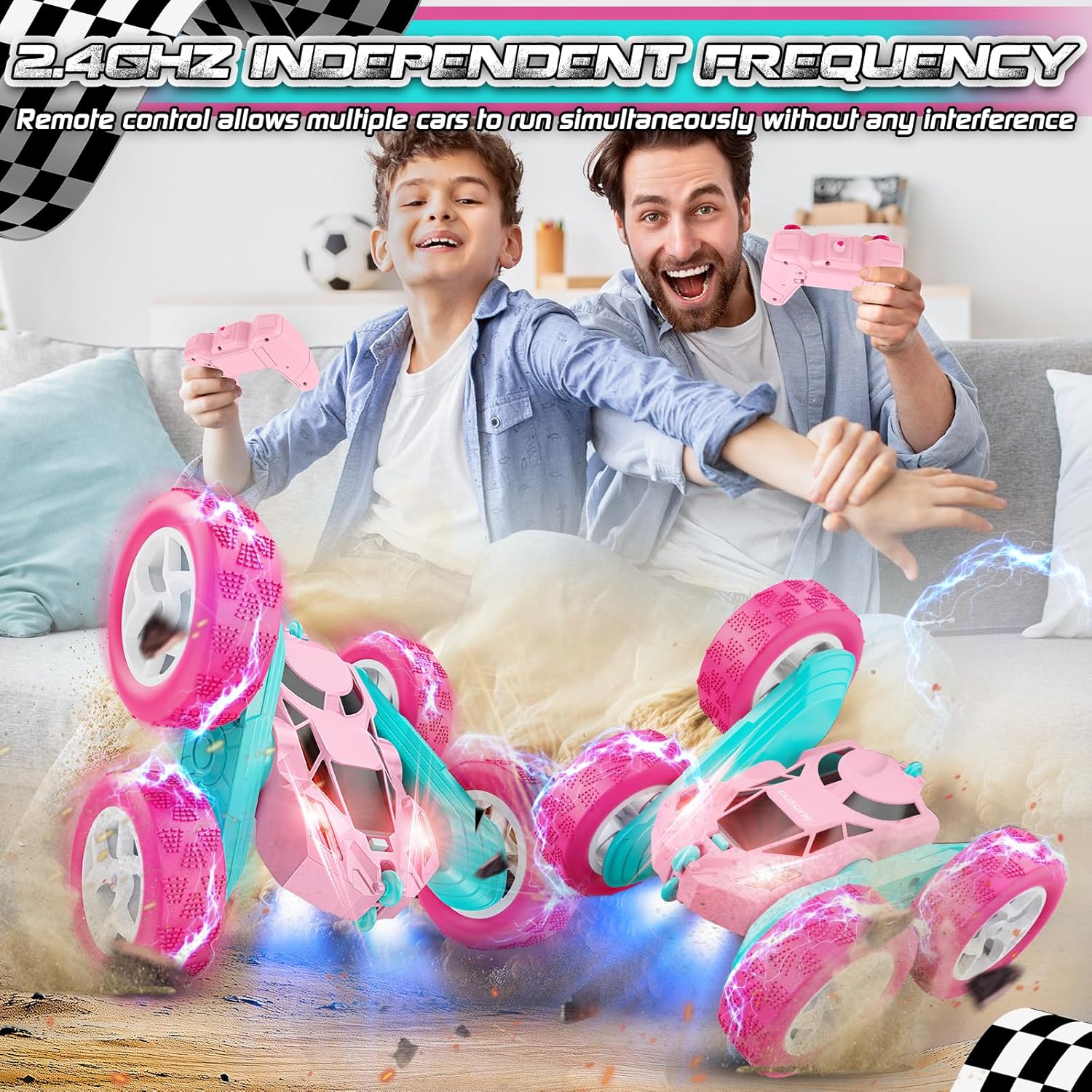 Pink Remote Control Car for Girls - RC Stunt Cars with 4WD Double-Sided Driving 360° Flips Rotating, Off Road Remote Car Outdoor Toys for Kids Age 6 7 8-12, Christmas Birthday Gifts