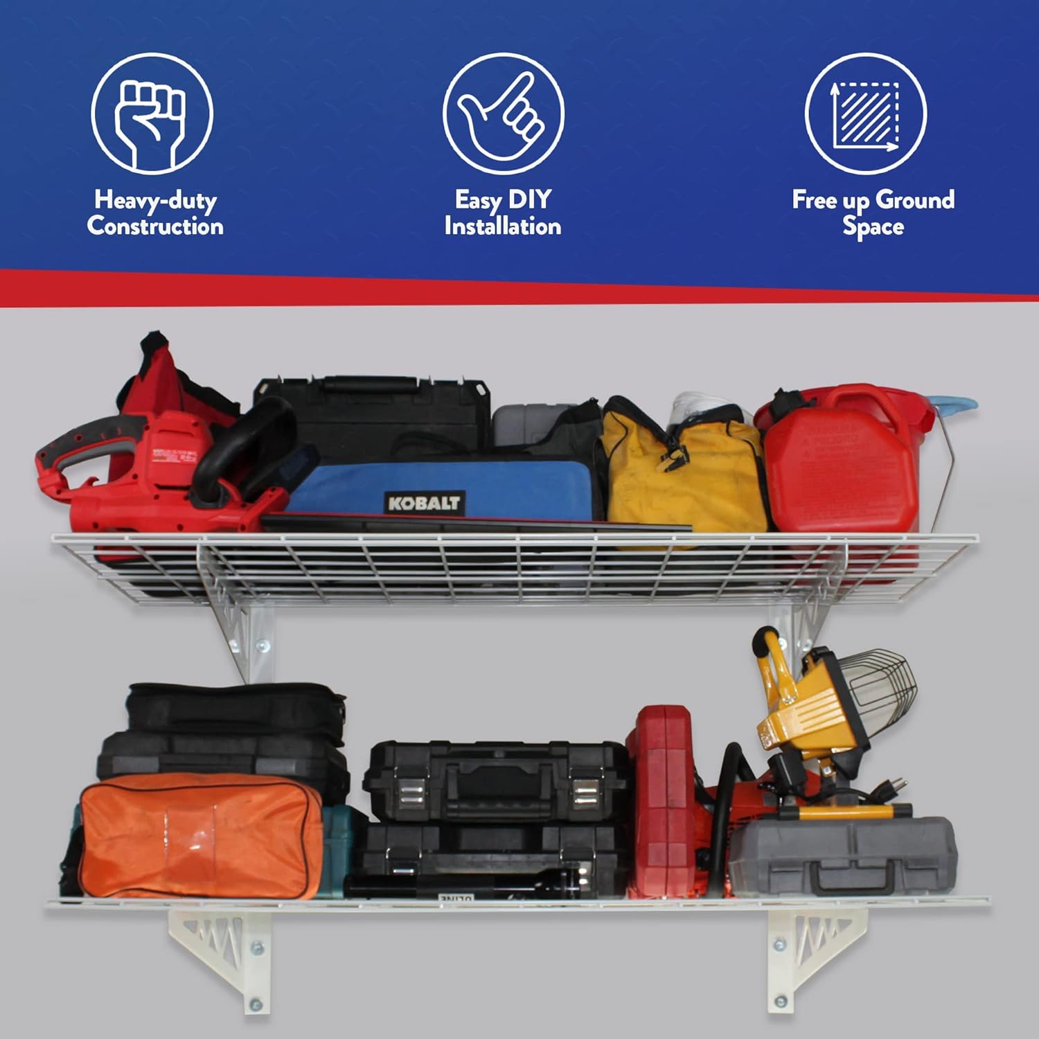 - CONVENIENT STORAGE SPACING: Innovatively designed to provide a clean and neat space for your utilities and accessories, our wall-mounted garage shelving units will save you space and help you organize items like golf clubs, storage bins, sports accessories, or bicycles.
