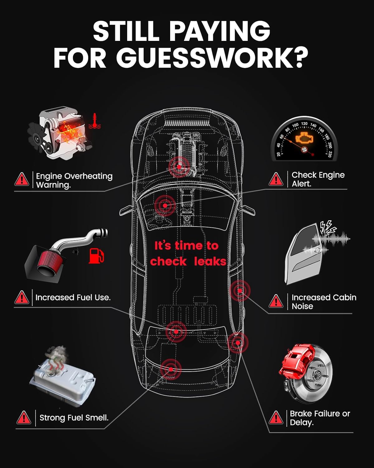 - USER-FRIENDLY AUTOMOTIVE SMOKE MACHINE: Begin your detection with just 4 simple steps using our automotive smoke tester. It's lightweight, portable, and even includes a built-in air pump for on-the-go jobs. Detect leaks effortlessly and elevate your automotive expertise. Don't miss out - revolutionize your auto experience and order this automotive tool today