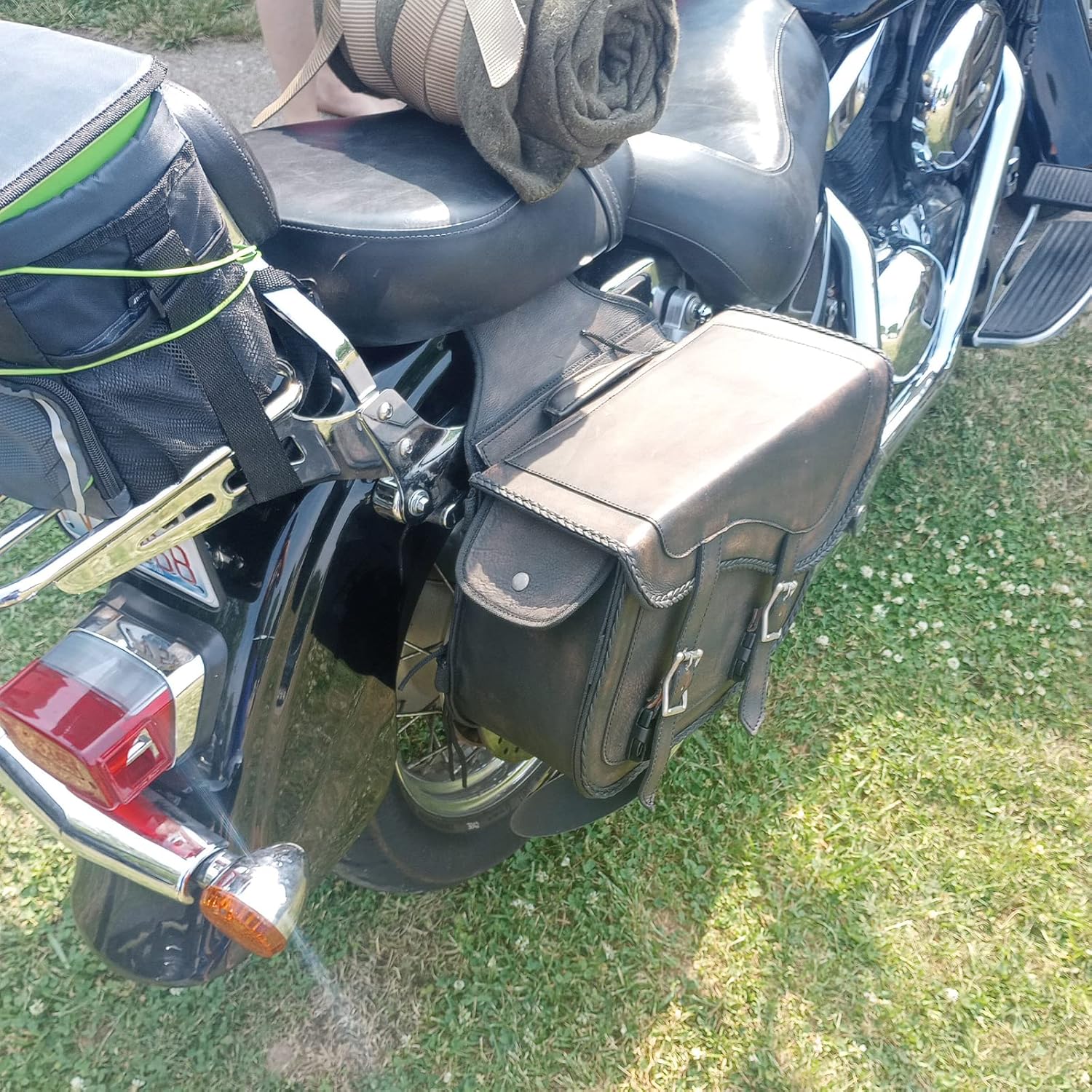 - 【Leather Material】This motorcycle saddlebags is made up of soft and durable heavy-duty leather. The reinforced sewing and moderate thickness make our motorcycle saddle bag can always keep its shape and longer service life.