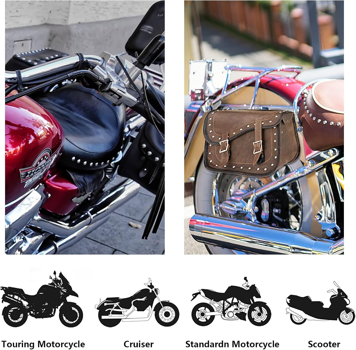 - 【Leather Material】This motorcycle saddlebags is made up of soft and durable heavy-duty leather. The reinforced sewing and moderate thickness make our motorcycle saddle bag can always keep its shape and longer service life.