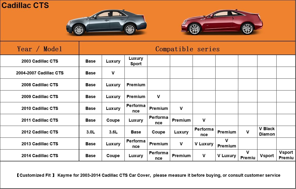 - ăSuitable forăâ Custom fit for Cadillac CTS (2003-2014). Come with a large enough portable bag to store your cover when you do not use