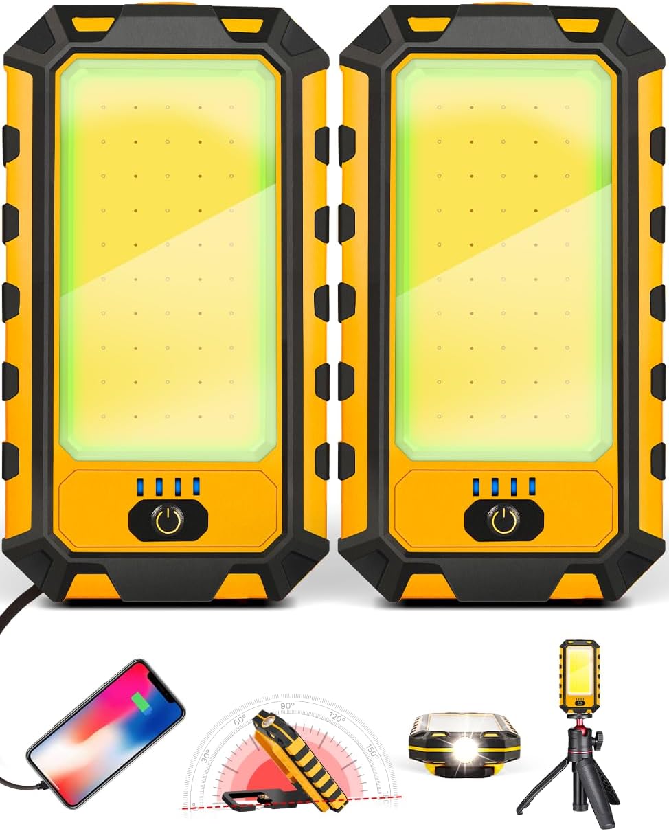 - 【WATERPOOF & LONG-LASTING】This rechargeable work light can be protected against splashing water from all angles, making it especially suitable for outdoor camping, hiking, car repair, etc. by using industrial class plastic and long-lasting aluminum alloy material, our light can pass 5ft drop impact resistance.