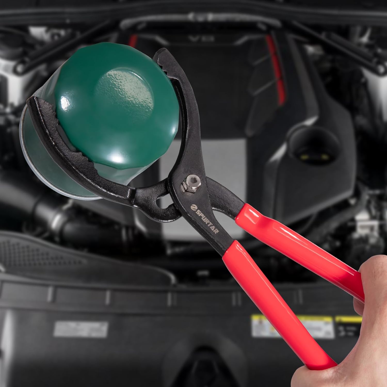 - Adjustable Design: The swivel oil filter wrench set comes with a unique swivel-handle design that allows the adjustable band to rotate 180 degrees to reach tight spots and spaces to get the oil filter out. The 12" oil filter plier has a serrated design that provides a strong grip to easily remove the stuck oil filter