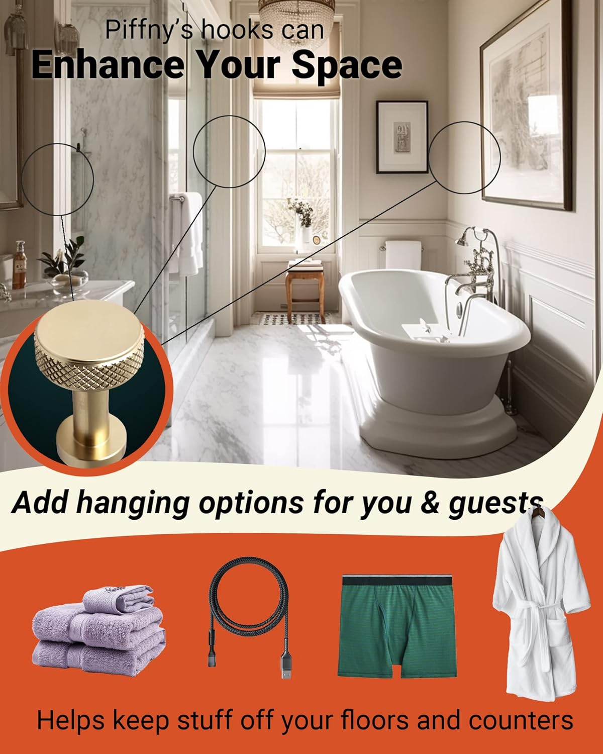 - VERSATILE STYLING: With its elegant and unassuming design, our round hook design offers a timeless appeal that seamlessly integrates with any decor. Its classic quality not only blends in with but can also elevate the overall aesthetic of any space while offering discreet hanging options for both you and your guests.