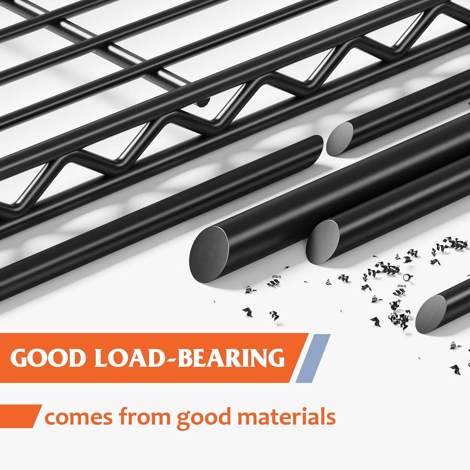 - ă850 LBS Super Sturdy Metal Shelving ăThis metal shelves for storage made of heavy duty steel wire,and has undergone special coating treatment.Every solid thickened shelving with extra stiffener,can easily bear 170LBS each shelf ,850 lbs bearing capacity totally.which means this metal shelving unit will always be your reliable partner