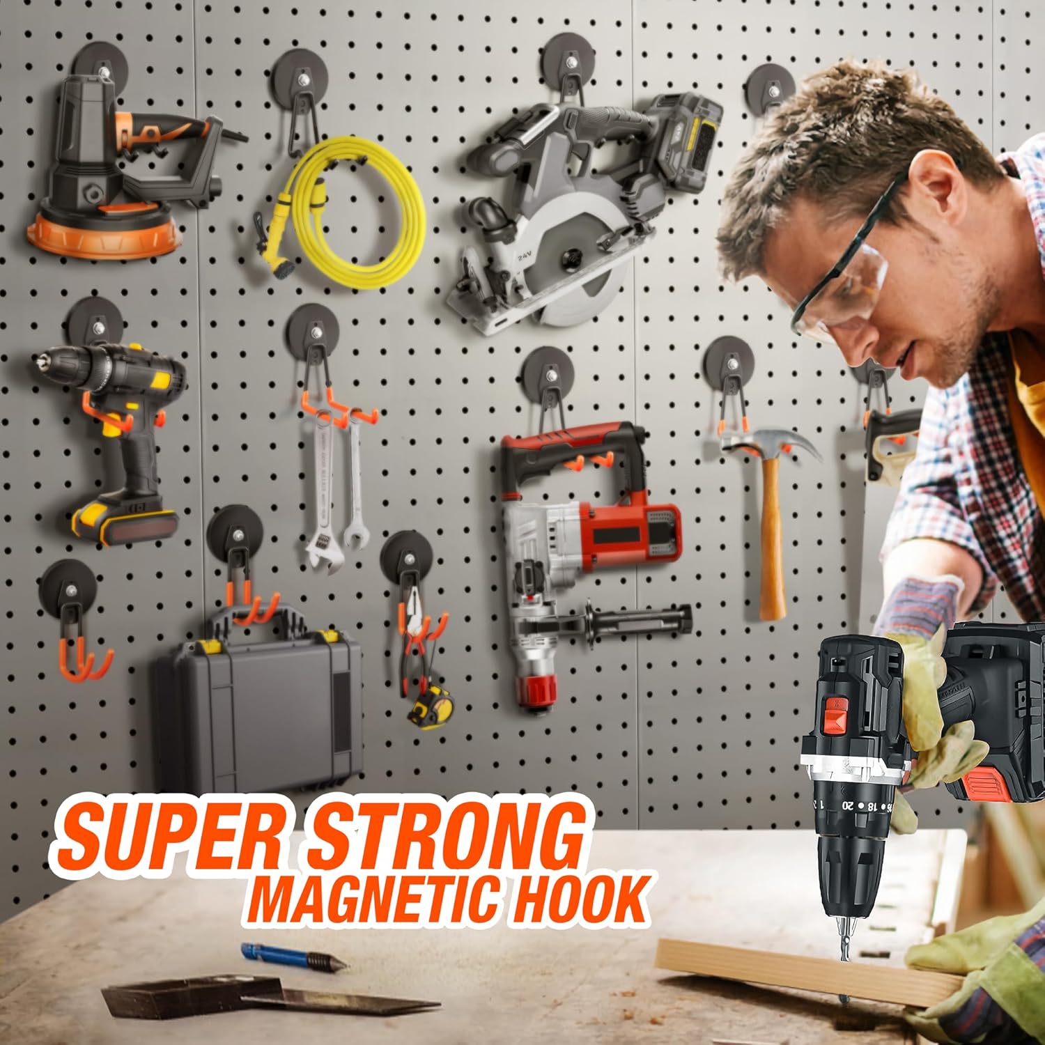 - 🧲[2PCS Magnetic Hooks For Hanging] Large strong magnetic hook present an efficient solution for optimizing vertical storage space within your garage organization system. These multifunctional extra magnet storage hooks are suitable for both indoor and outdoor settings, including garages, gardens, kitchen, warehouse, cruise cabin, utility rooms and indoor/outdoor.
