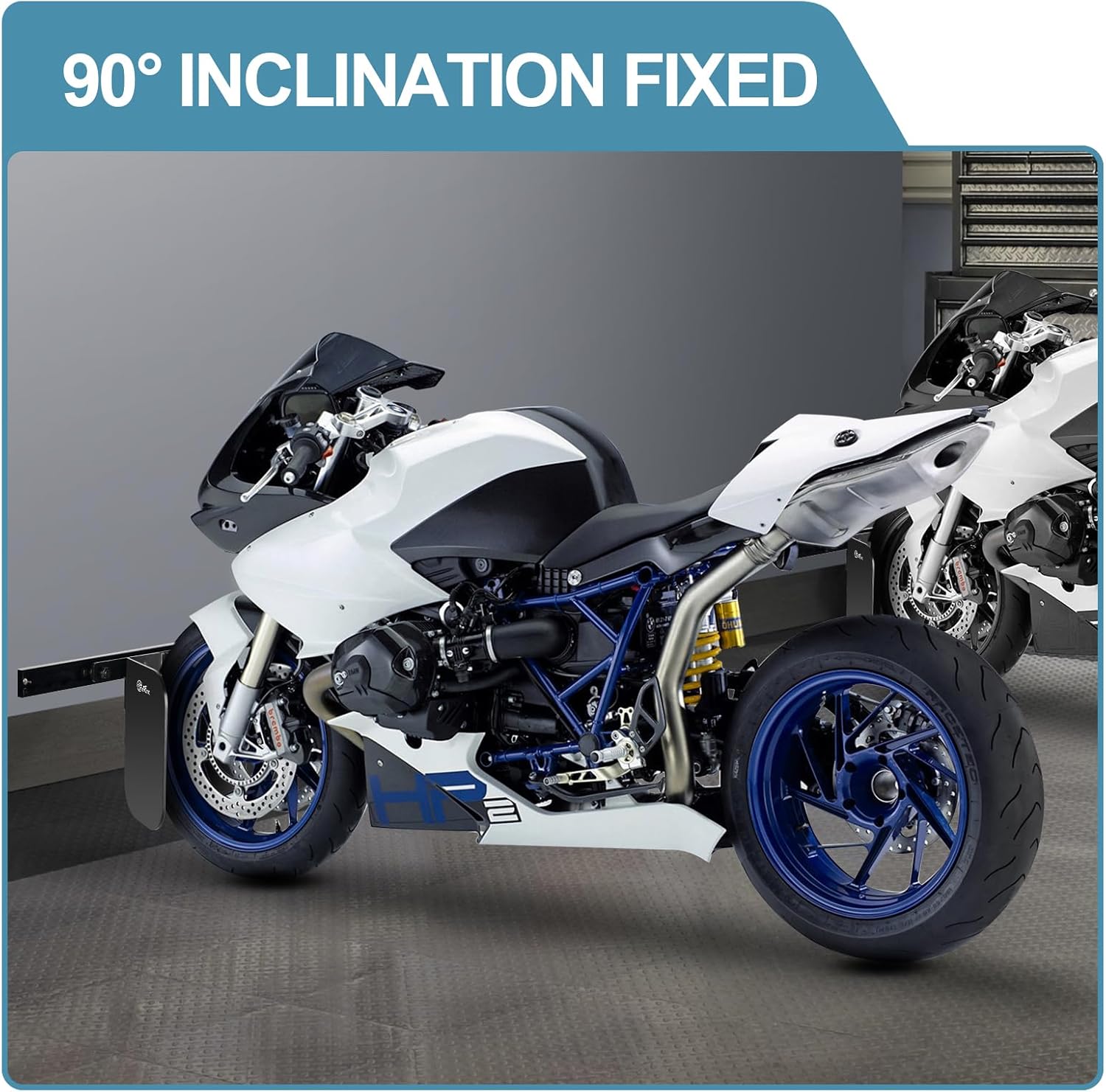 • Easy to Use:Use motorcycle wheel chocks to secure your motorcycle to L-Track rail Mount multiple bikes in tight spaces with the bike wheel chock mounted at a 90-degree angle. Keep your bike organized and accessible by installing motorcycle front tire chocks at a 45-degree angle.